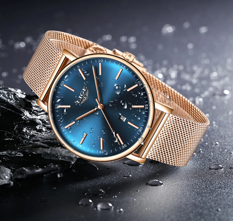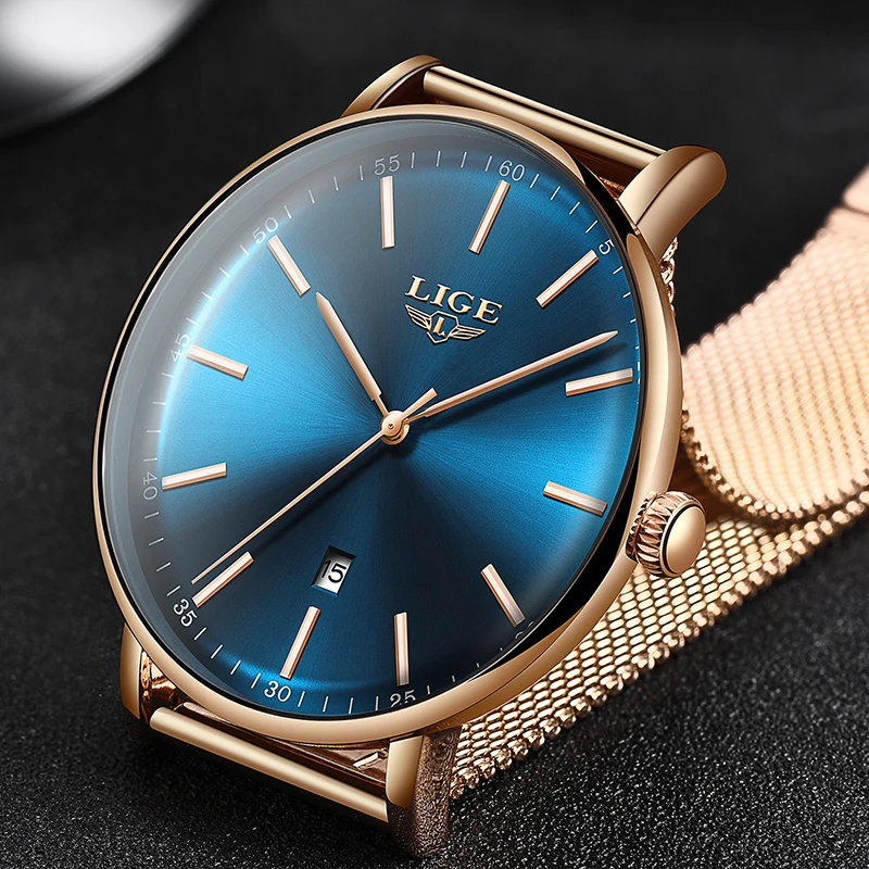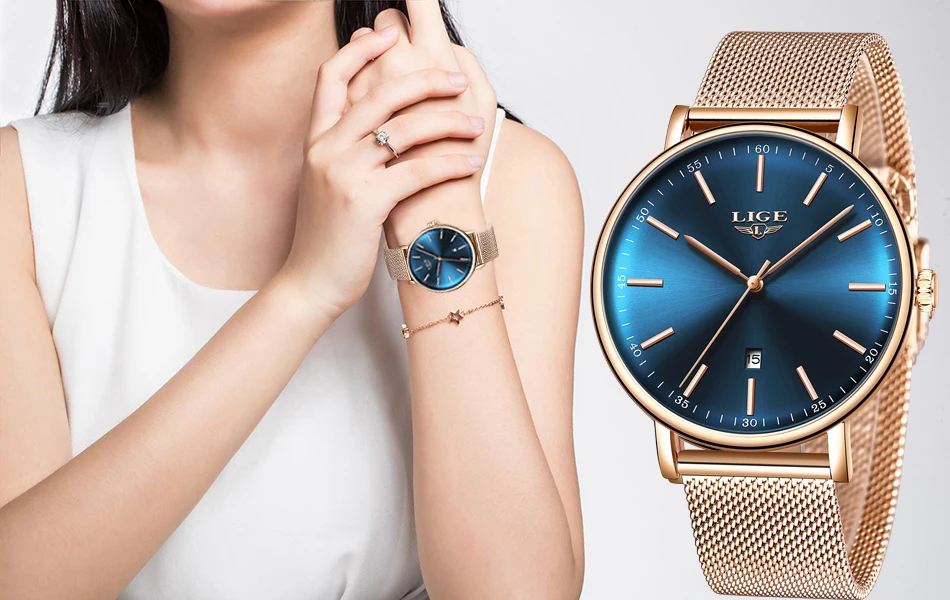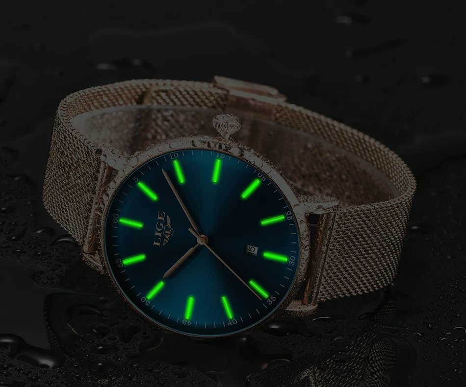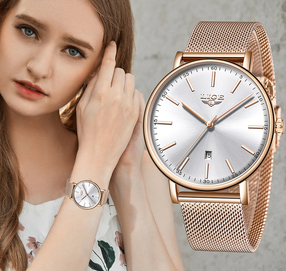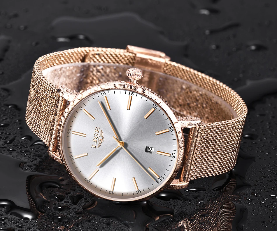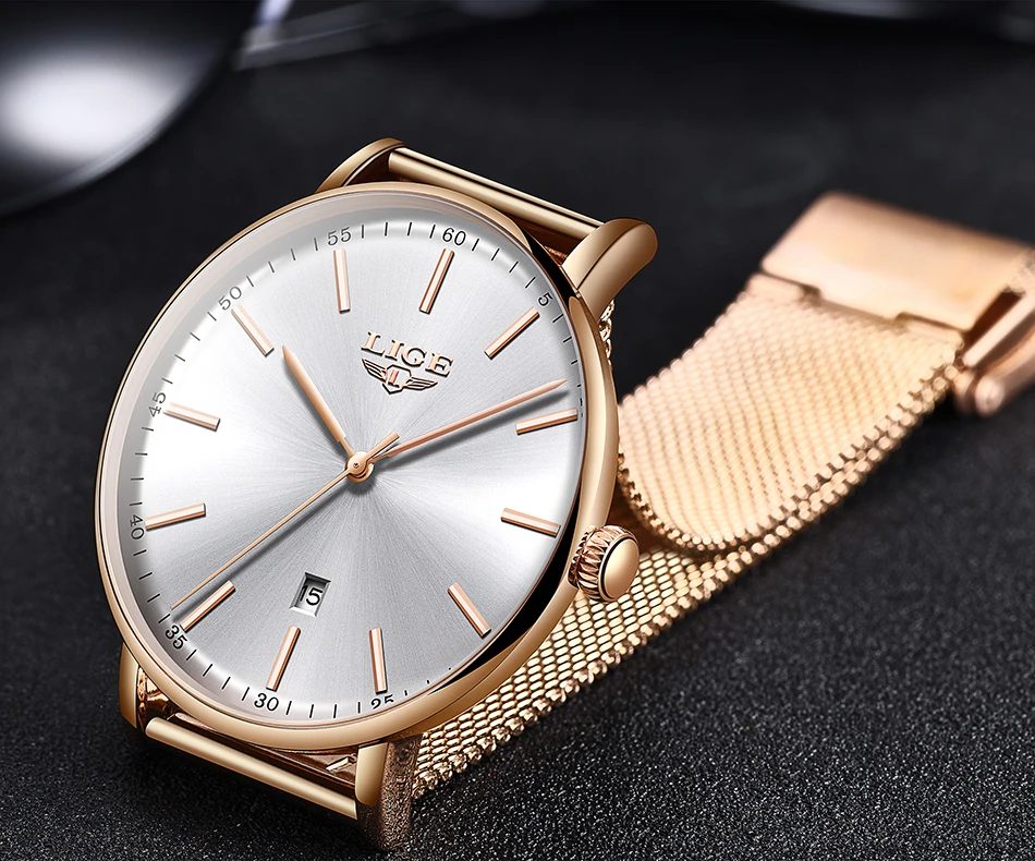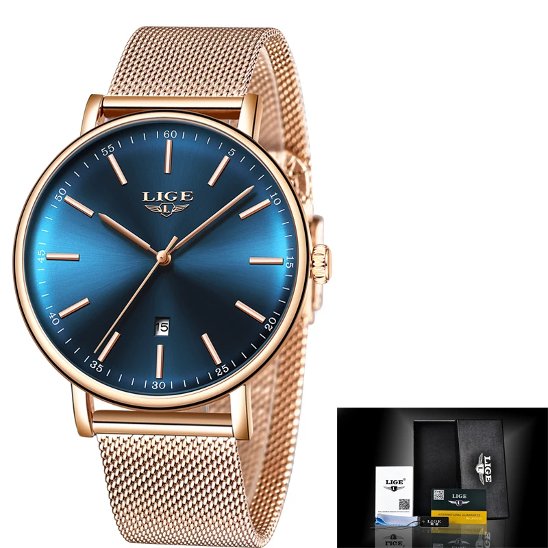 Часы наручные LIGE женские кварцевые, брендовые Роскошные водонепроницаемые ультратонкие из нержавеющей стали, повседневные