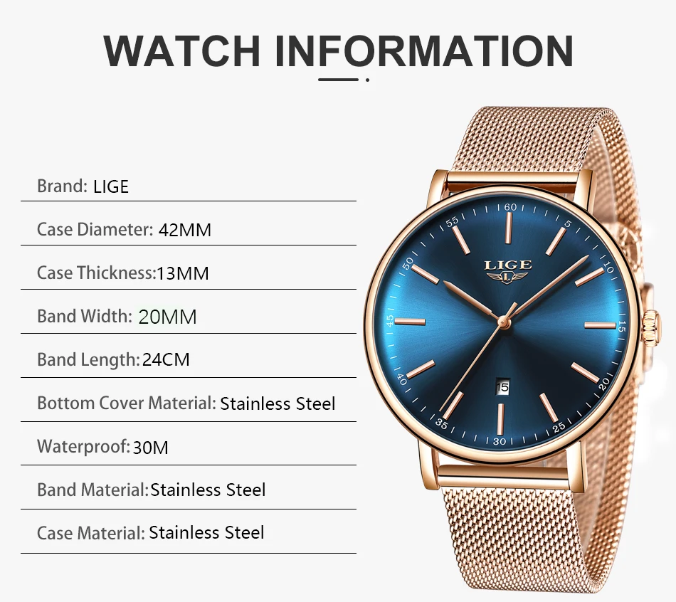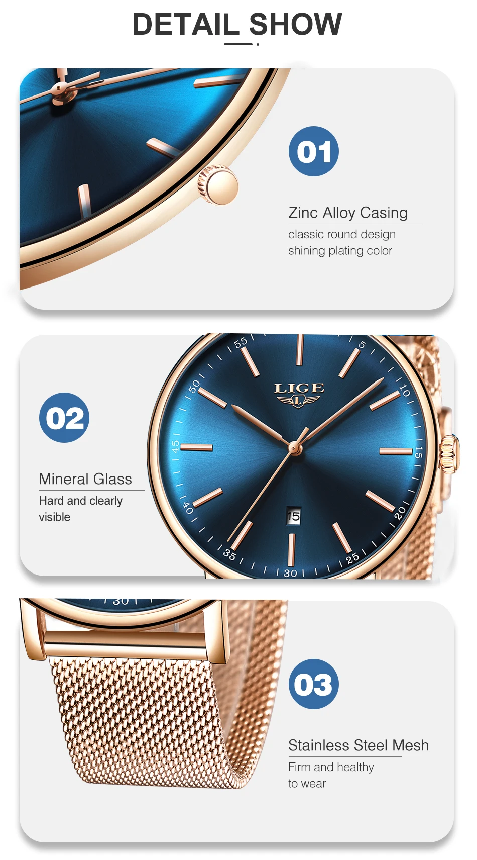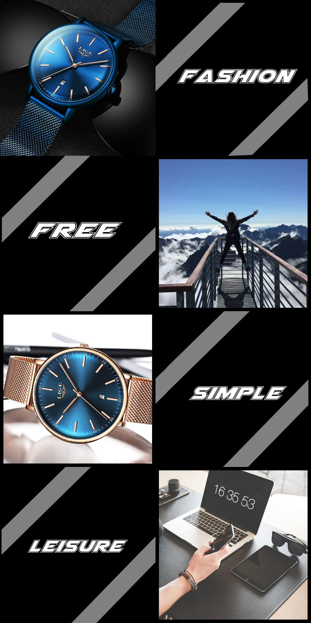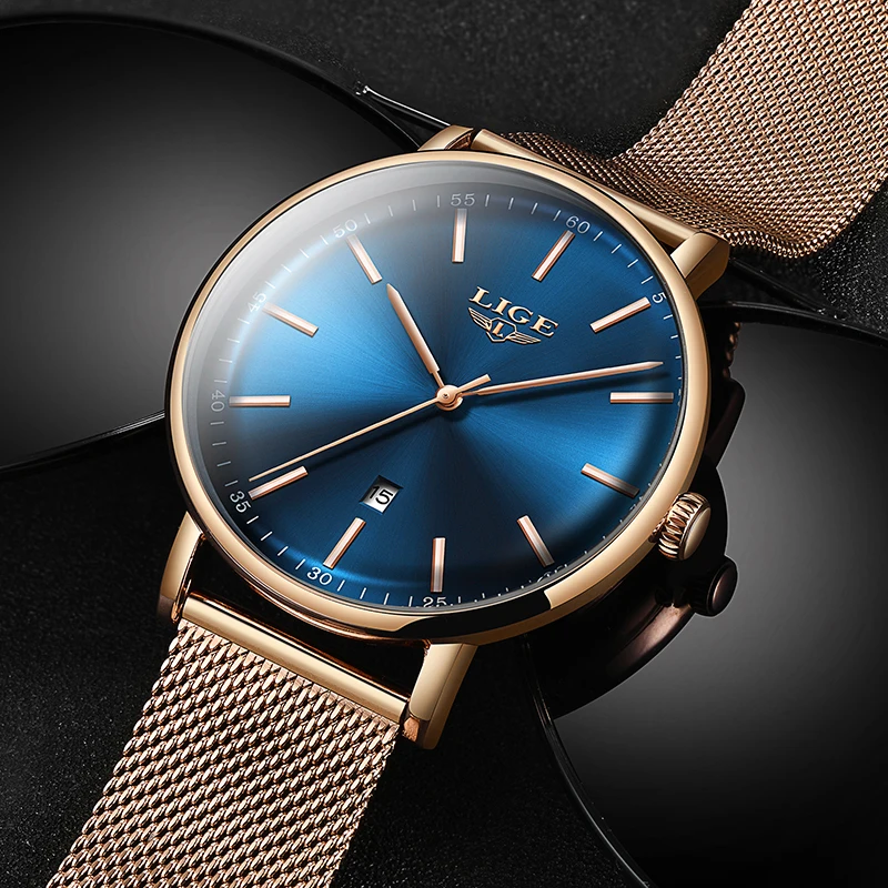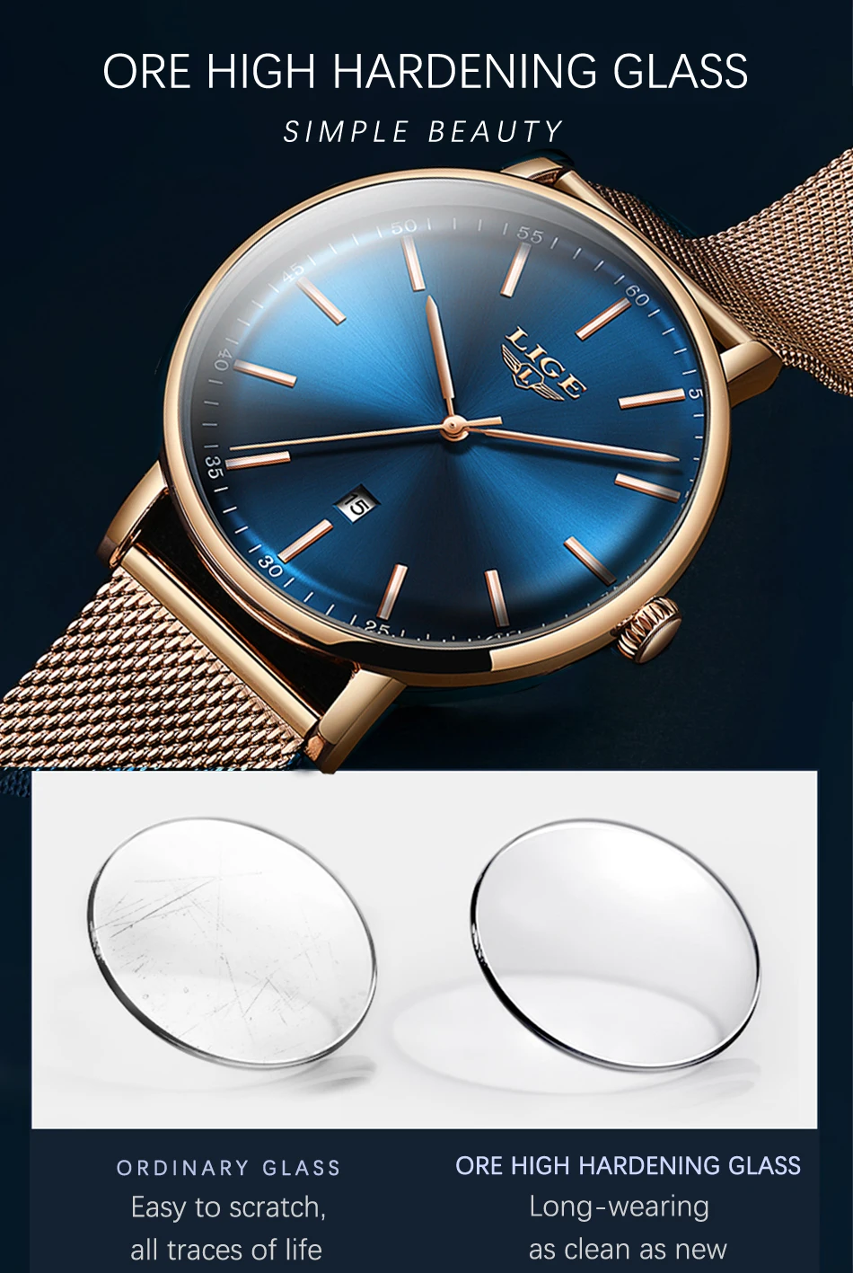Часы наручные LIGE женские кварцевые, брендовые Роскошные водонепроницаемые ультратонкие из нержавеющей стали, повседневные