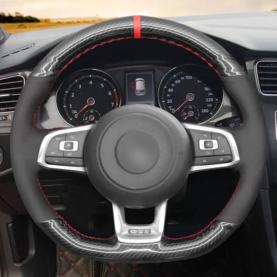 Черный углеродного волокна Черная замша чехол рулевого колеса автомобиля для Volkswagen VW Golf 7 GTI T-Roc Passat вариант (R-Line) Tiguan