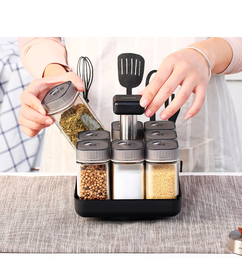 16 шт. набор приправ 360 ° вращающийся стеклянный контейнер для приправ стойка для барбекю перечница, солонка бутылка Paprika кухонная стойка для хранения