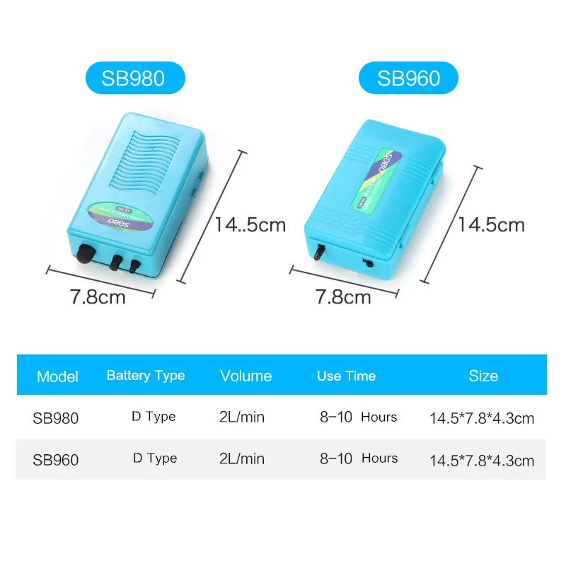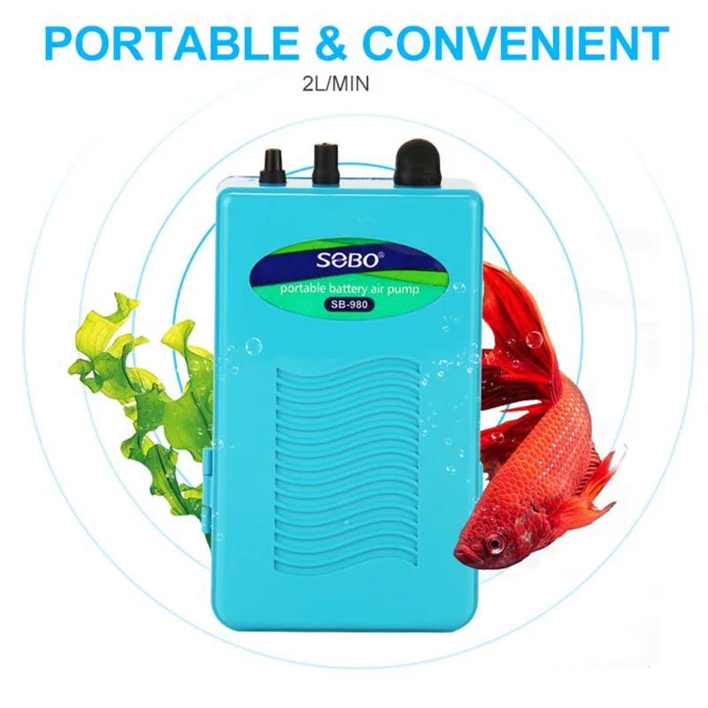 SOBO Портативный большой Мощность воздушный насос с аккумулятором аквариум для приготовления пищи на воздухе рыбалка с воздушным камнем воздушный шланг высокое качество 2Lмин