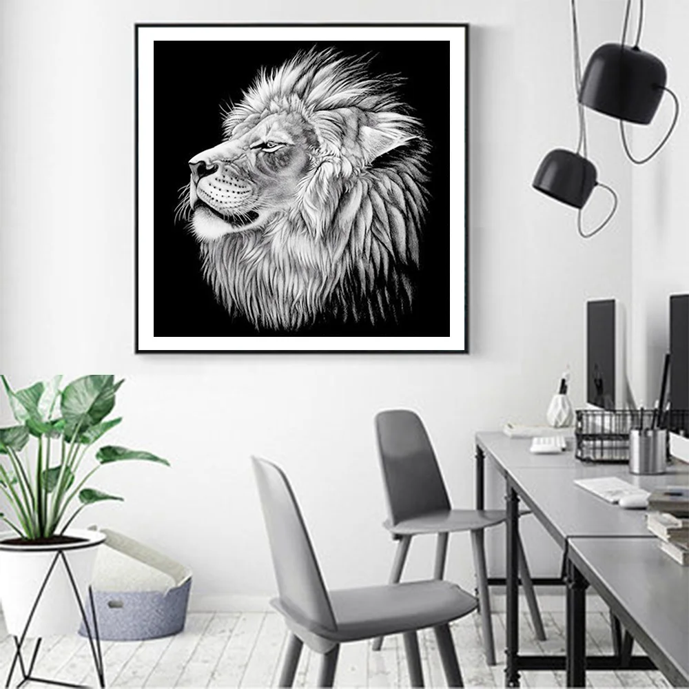 Голова льва животное Алмазная картина круглая полная дрель Nouveaute DIY мозаика вышивка 5D Вышивка крестом черно-белая картина