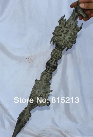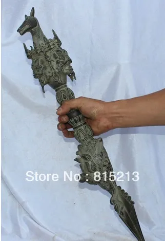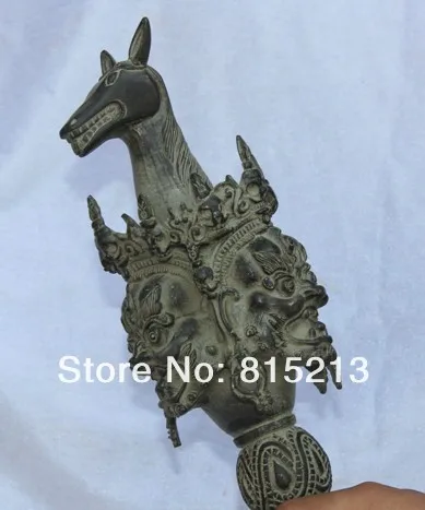 Бесплатная доставка, АНТИЧНЫЙ ТИБЕТСКИЙ буддистский бронзовый стул wang 000904 21 дюйм, держатель для кинжала Phurba с лошадиной головой