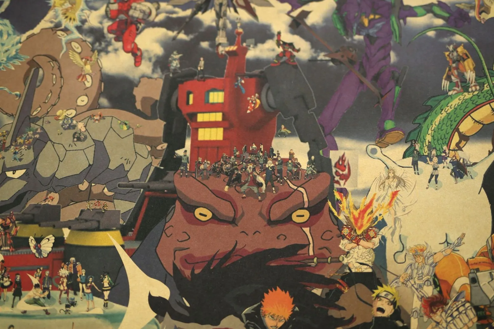 Классический анимационный постер из крафт-бумаги в стиле аниме, нас...