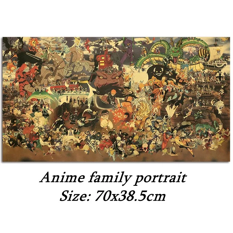 Семейное фото японской анимации, Постер из крафт-бумаги, украшение для дома, картина, настенная наклейка, картина в подарок, 70x33 см