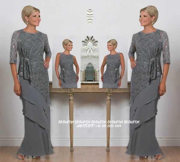 Шифоновые платья для матери невесты с кружевной курткой серые Серебристые многоярусные Длинные платья для жениха и матери для гостей свадьбы платья Madrinha