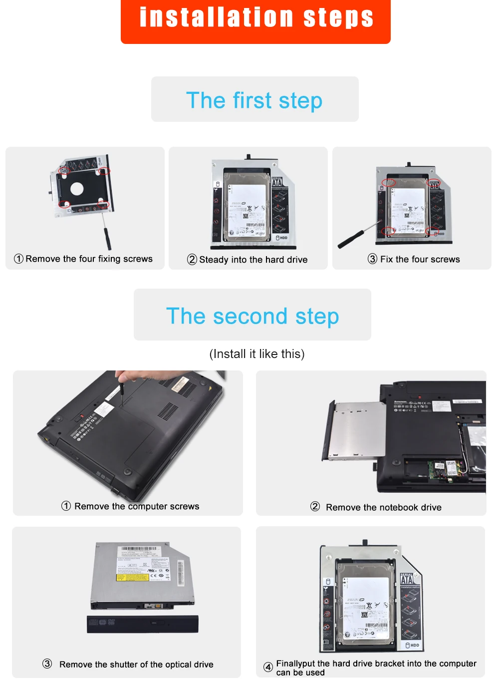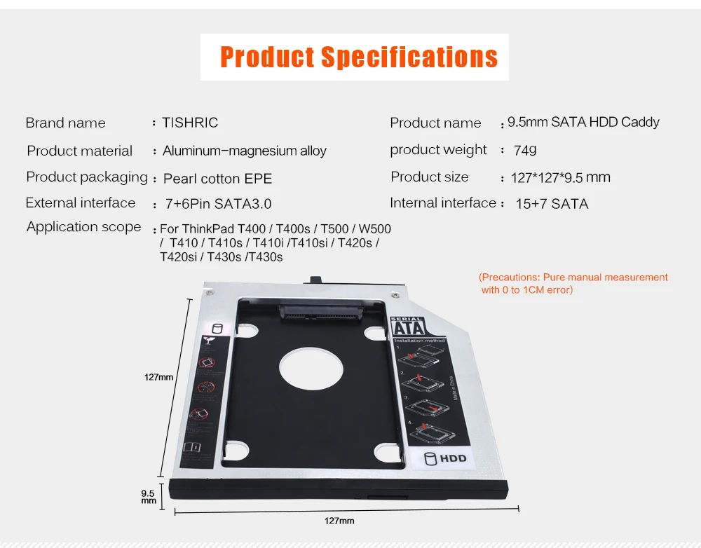 Корпус TISHRIC для жесткого диска SATA 9,5 мм 12,7 мм, корпус для жесткого диска SSD, Оптический корпус для Lenovo ThinkPad T400s T400 T410 T410s T420s T430s
