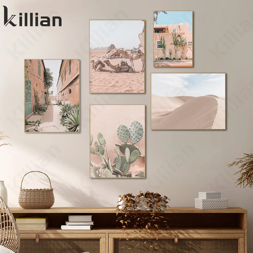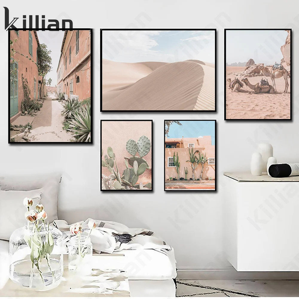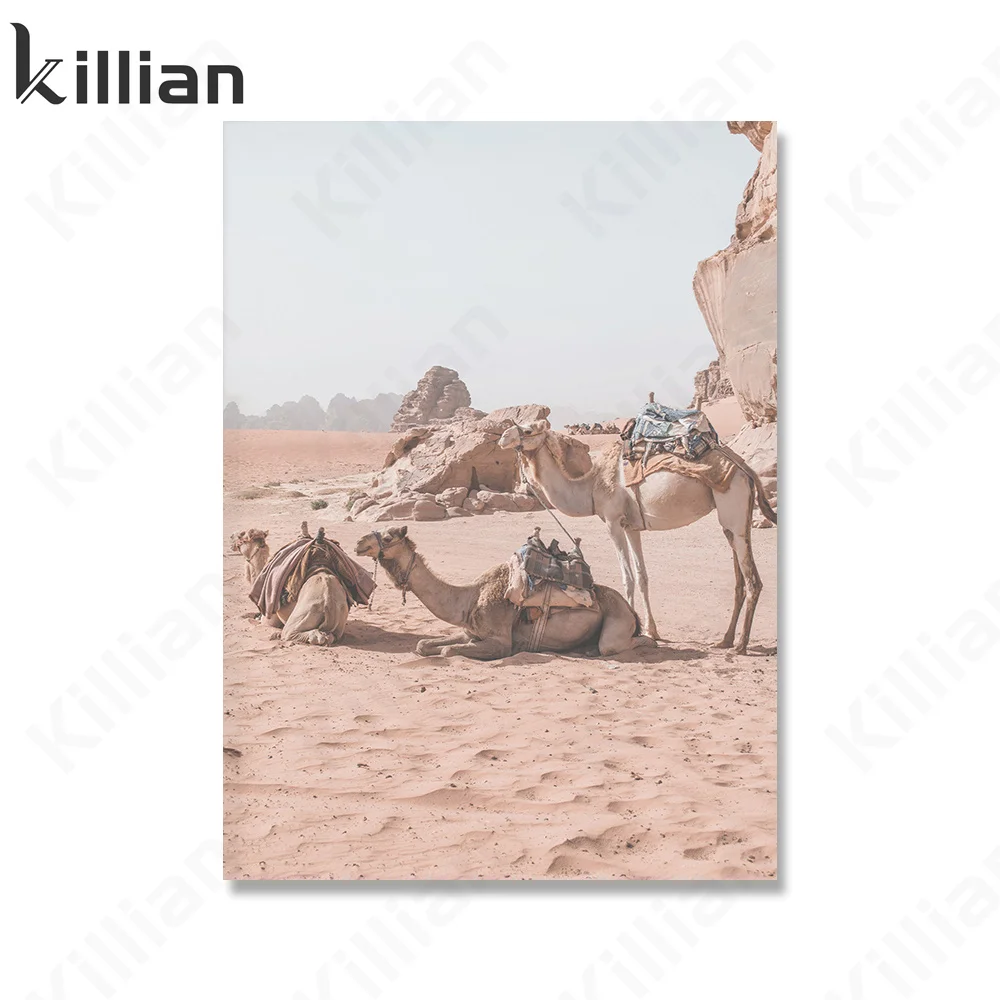 Пейзажная живопись, наклейки, кактус, пустыня, верблюд, пейзаж, настенная живопись, Картина на холсте, скандинавские постеры и принты, декор для гостиной