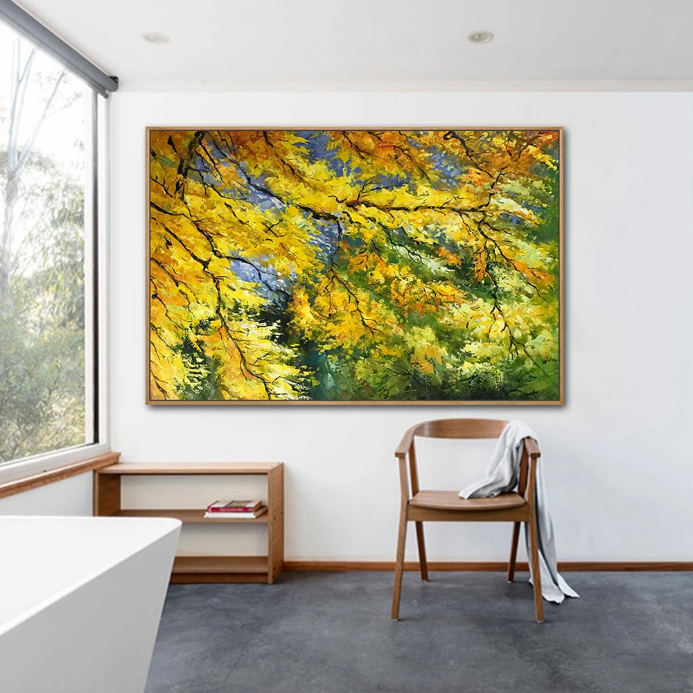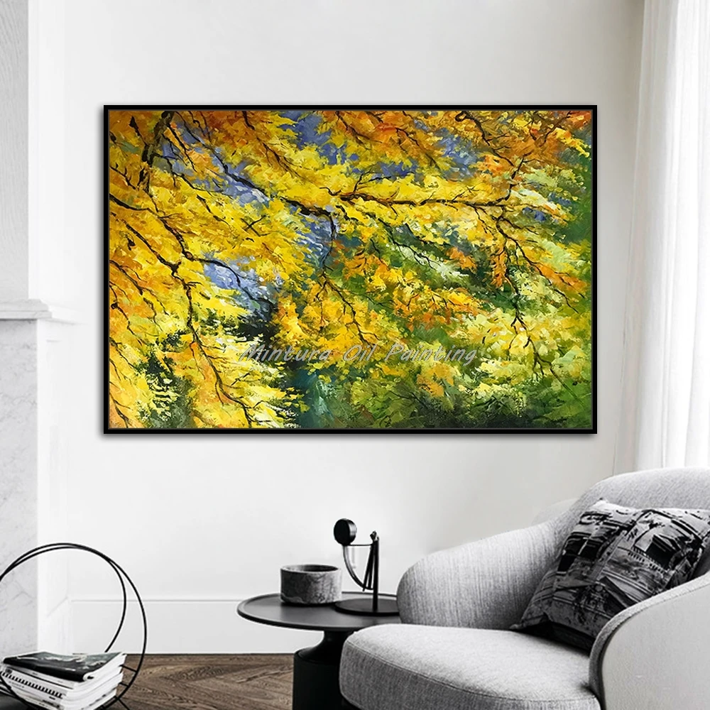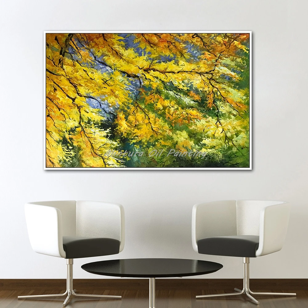 Картина на стену Mintura для гостиной Масляные картины на холсте Ручная роспись желтые листья Декор отеля современное настенное искусство без рамки.