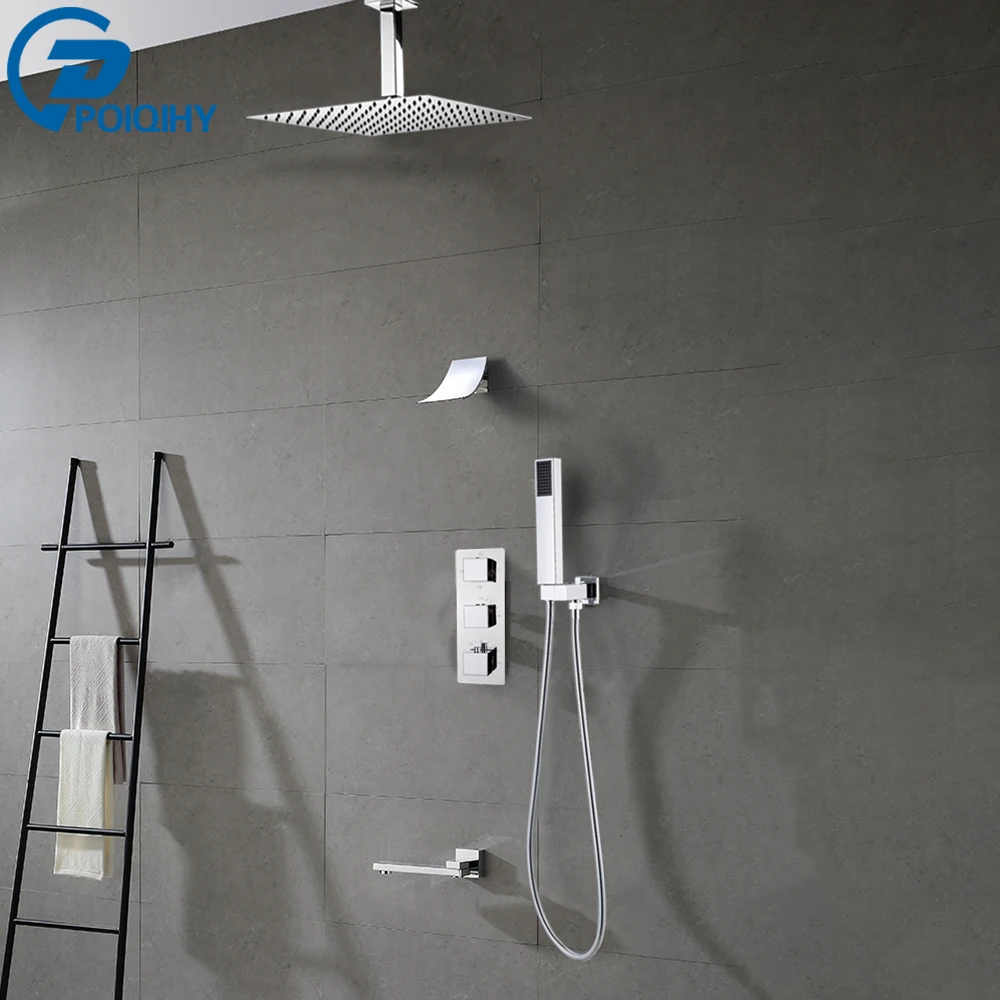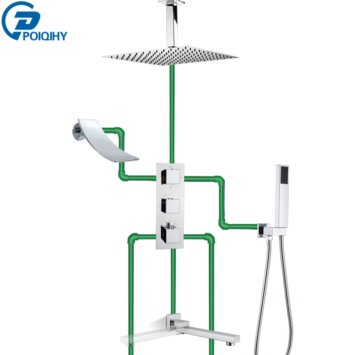 Хромированный дождевой Термостатический смеситель для душа с водопадом, система для ванны с поворотным носиком, латунный термостат, смеситель для душа для ванной комнаты
