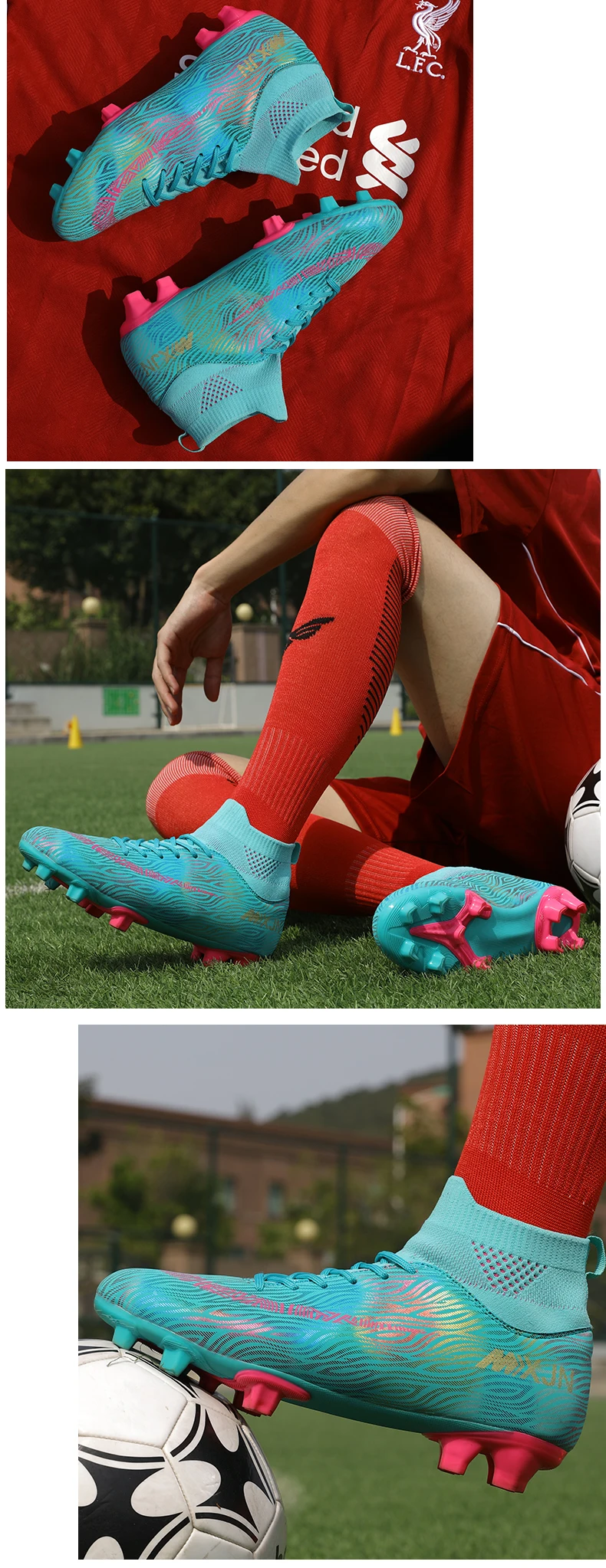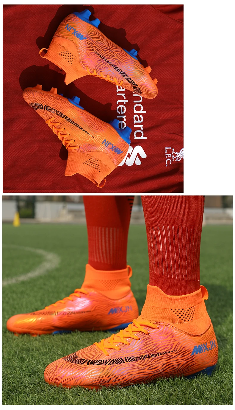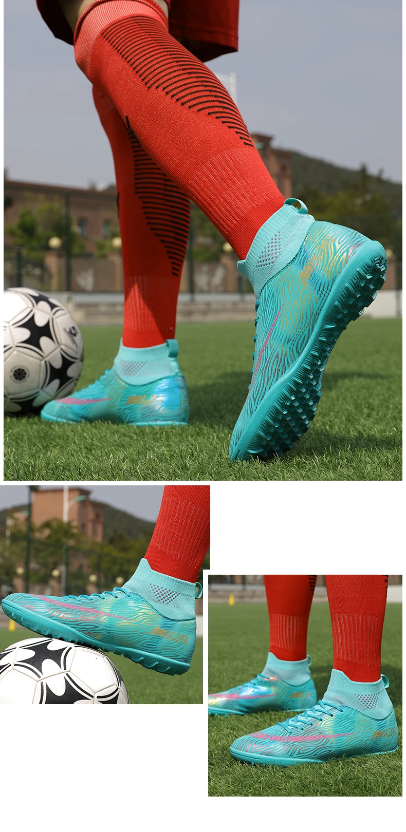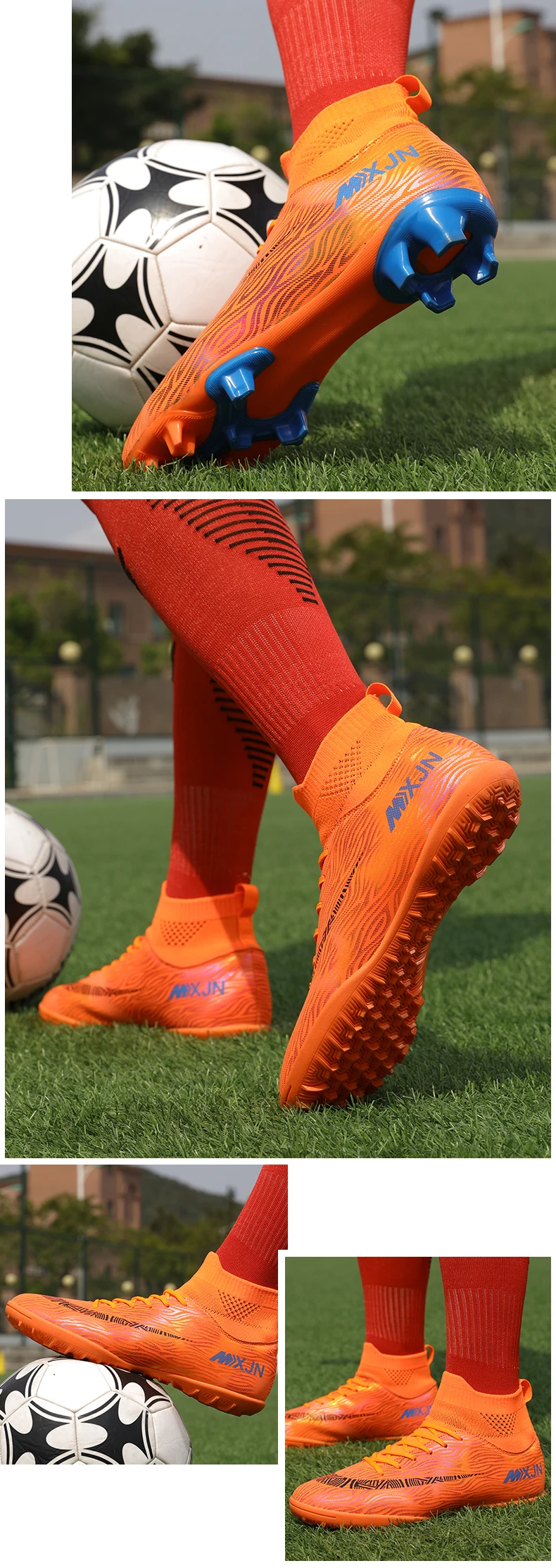 Футбольные бутсы FG TF с гвоздями, для дома, футзала, спортивная обувь для родителей и детей, мужские футбольные бутсы с высокой лодыжкой, размер 35 -45