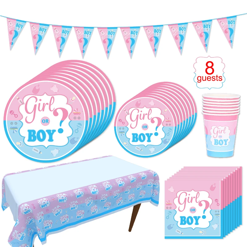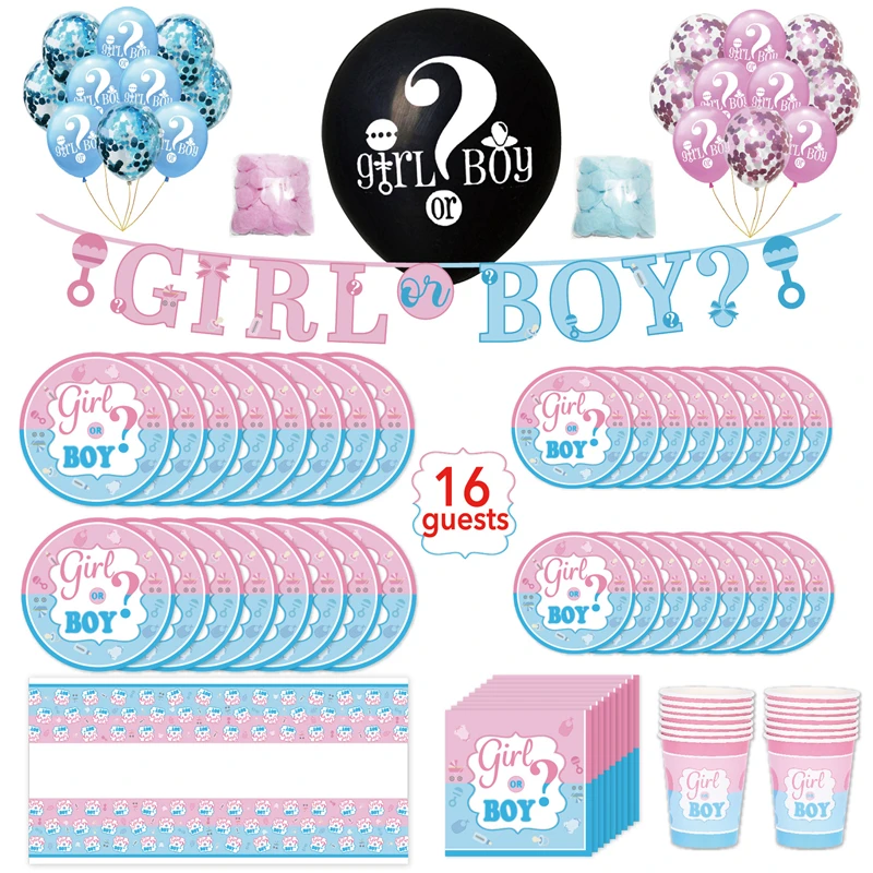 Набор одноразовой посуды для мальчиков и девочек, набор тарелок, салфетки, воздушные шары, украшение для вечеринки в честь будущего ребенка, дня рождения