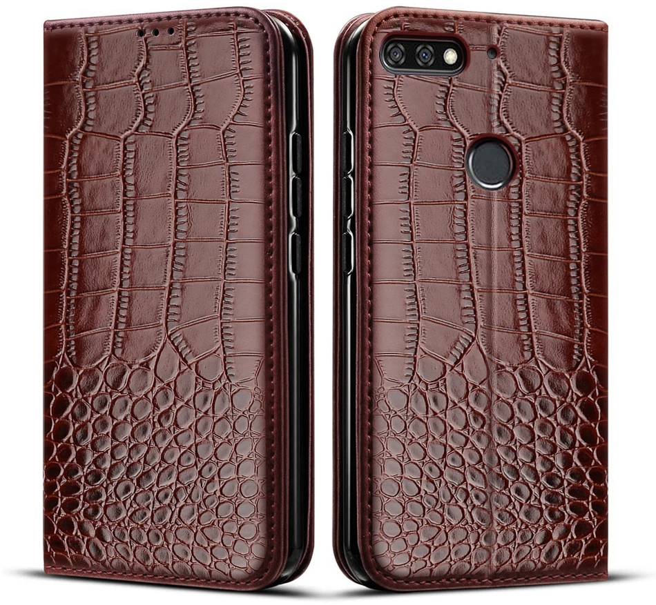 Чехол для Huawei Honor 7A 5,45 дюйма, кожаный чехол с крокодиловой ...