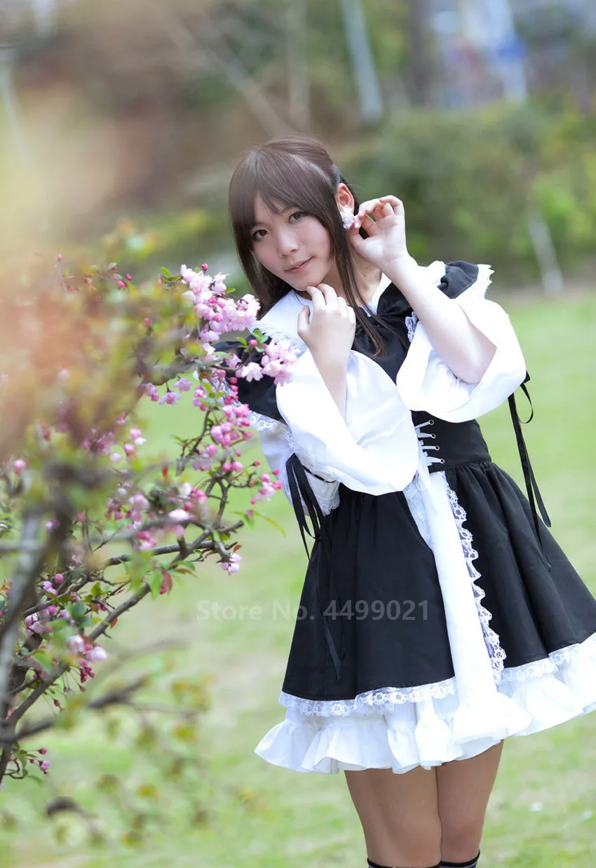 Хэллоуин Женщины Мужчины косплей костюм горничной платье-передник Cafe Servnat Lolita Ретро сексуальное кружевное платье с рюшами Пышный рукав бант