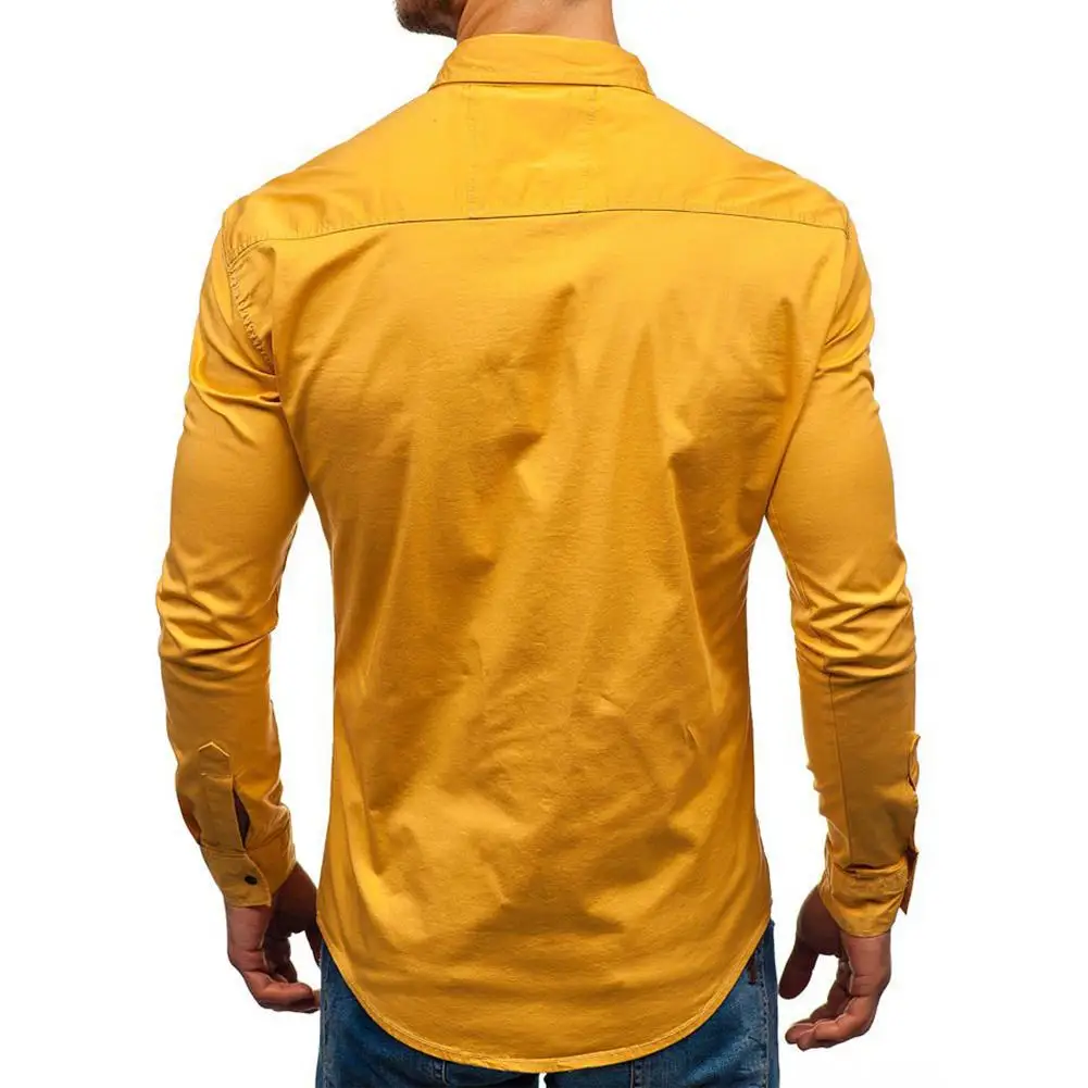 Повседневная мужская Однотонная рубашка с отложным воротником и длинным рукавом
