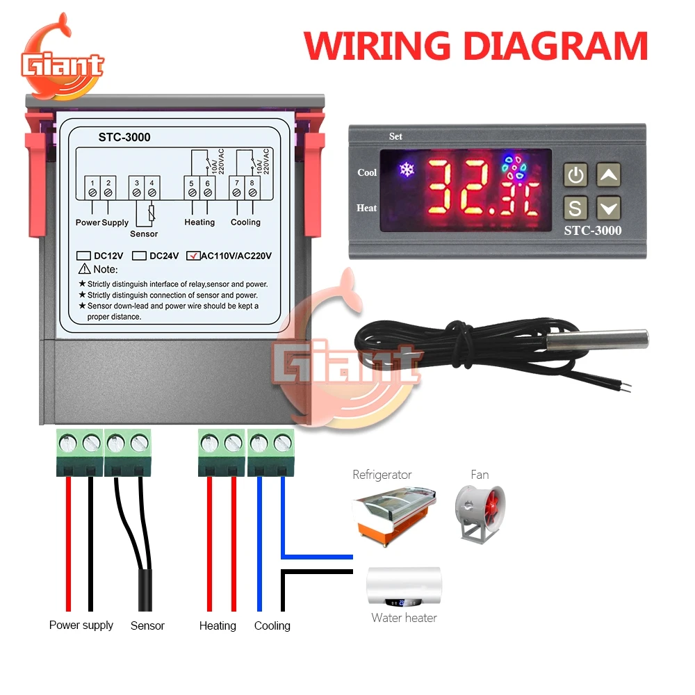 Цифровой регулятор температуры STC-3000 AC 110-220 В, домашний термостат для датчика Arduino, реле терморегулятора для инкубатора