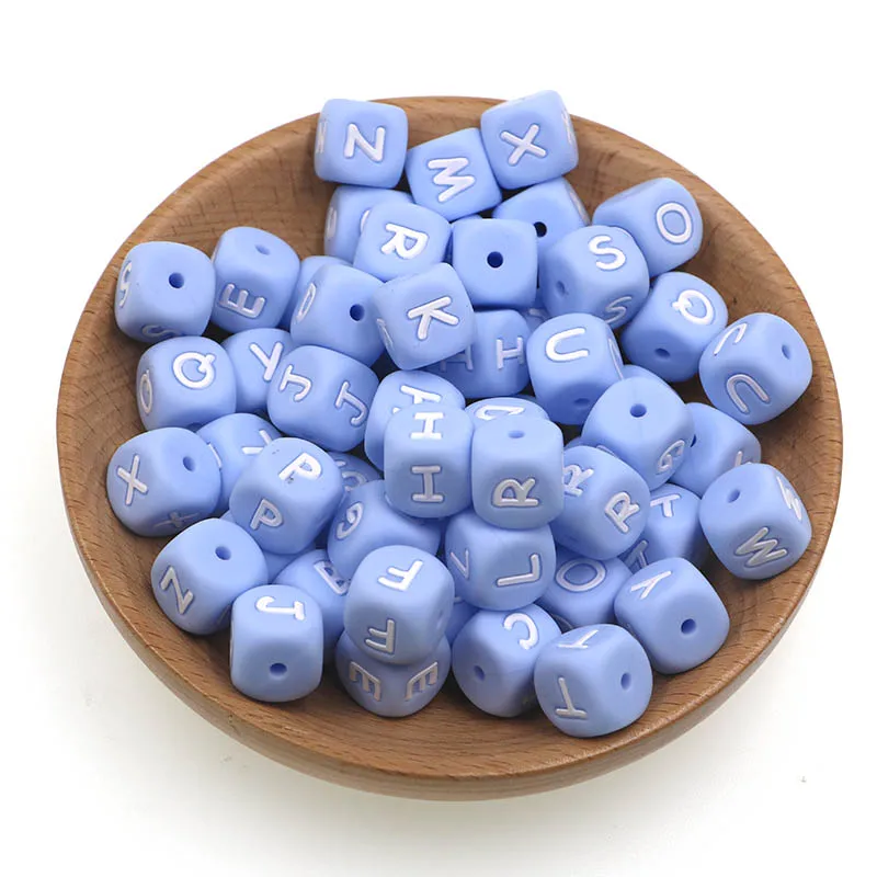 10 шт., силиконовые бусины в виде букв алфавита, 12 мм