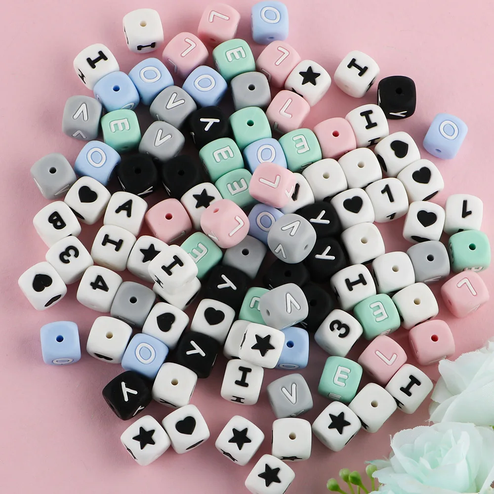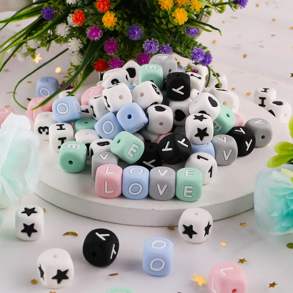 100200500 шт., силиконовые бусины с буквами, 10 мм