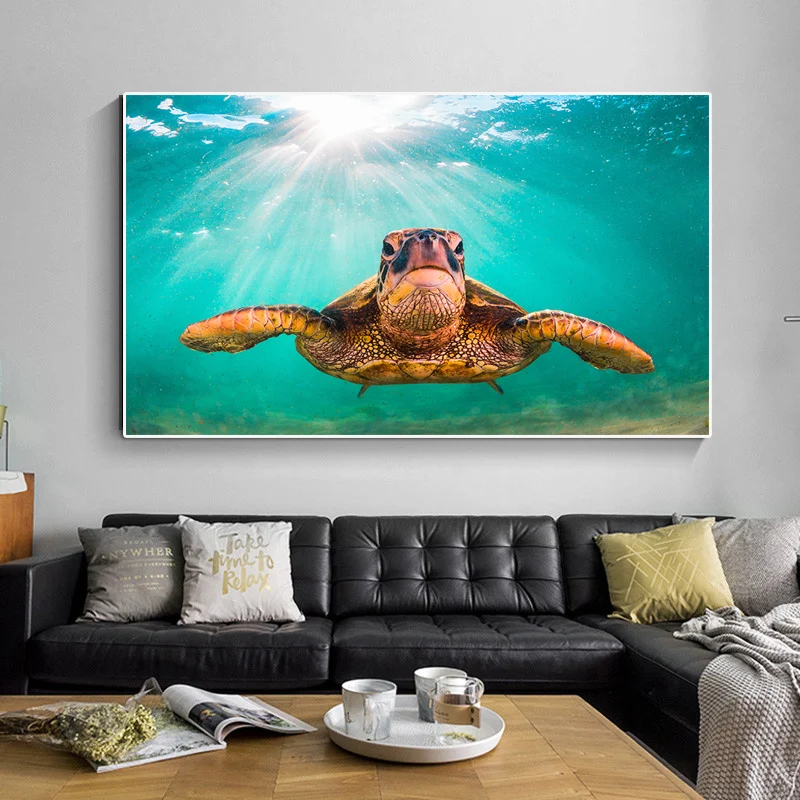 Настенная картина голубая черепаха, морской пейзаж, Картина на холс...