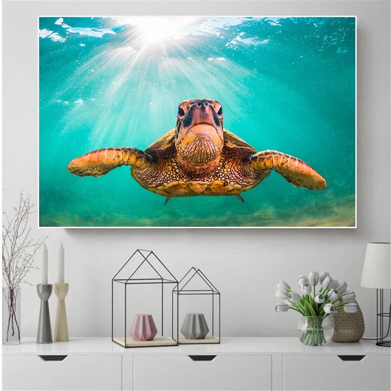Картина на холсте с изображением синей черепахи, Морского Пейзажа, скандинавский попугай, животное, Настенная картина, постер с принтом для декора детской комнаты