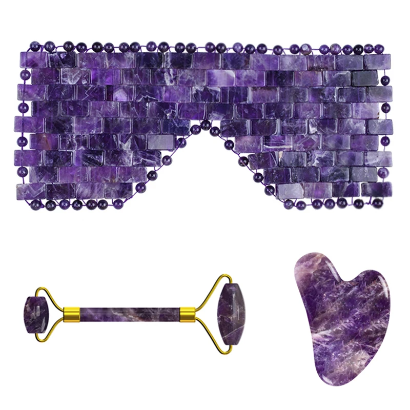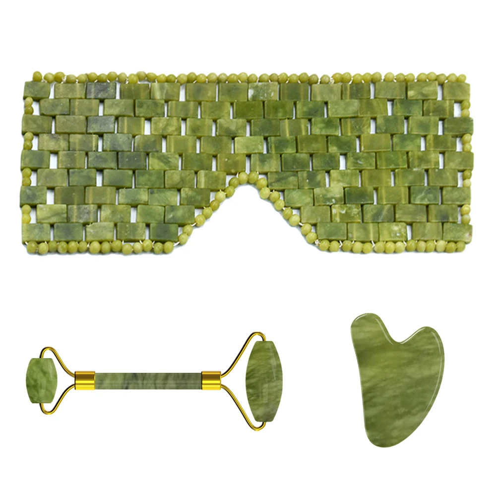 Нефритовая маска для глаз, бритвенный набор Guasha, 100% натуральный кристалл, маски для сна, инструмент для ухода за кожей, роликовый массажер