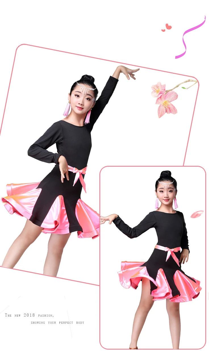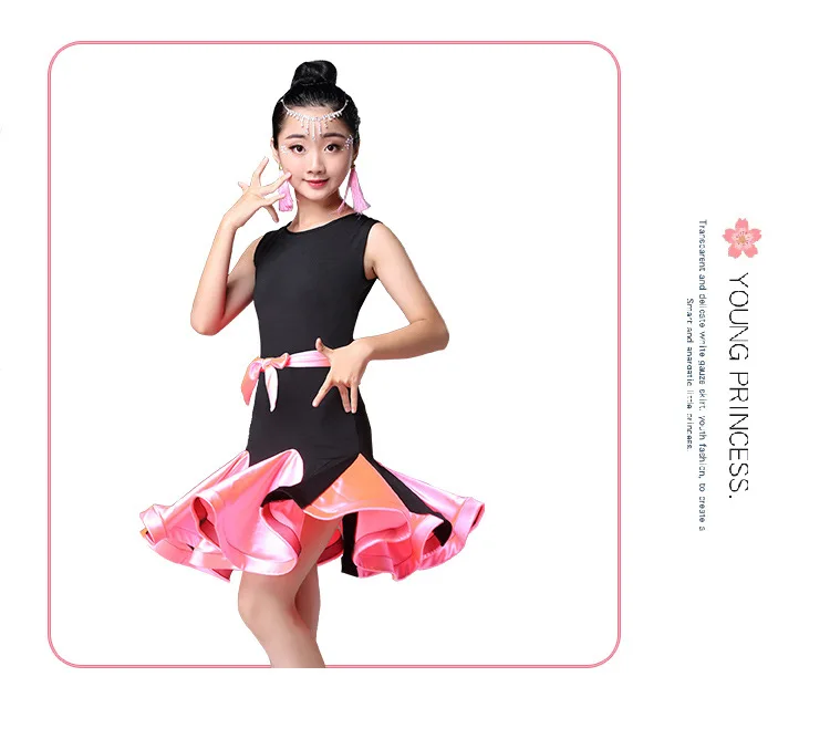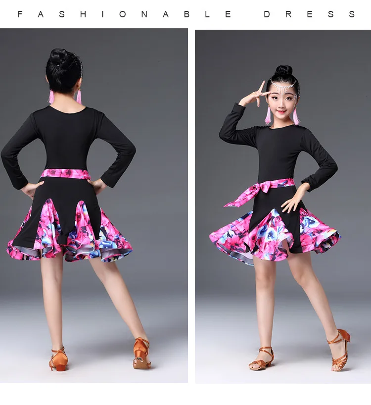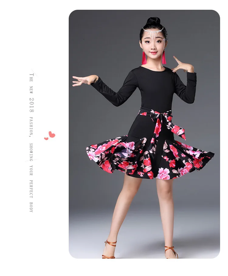 Детские для девочек латинские танцы платье для танцев с цветочным узором одежда для латинских танцев пикантные Сальса костюм черный, красный конкуренции танго платья