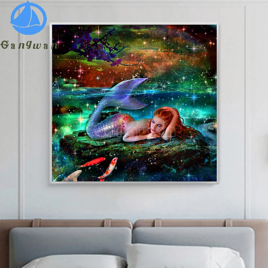 В виде красивой русалки набор алмазов для создания картины камни в форме ромба круглый Алмазная вышивка продажи Животные вышивка крестом Стразы арт хобби подарок