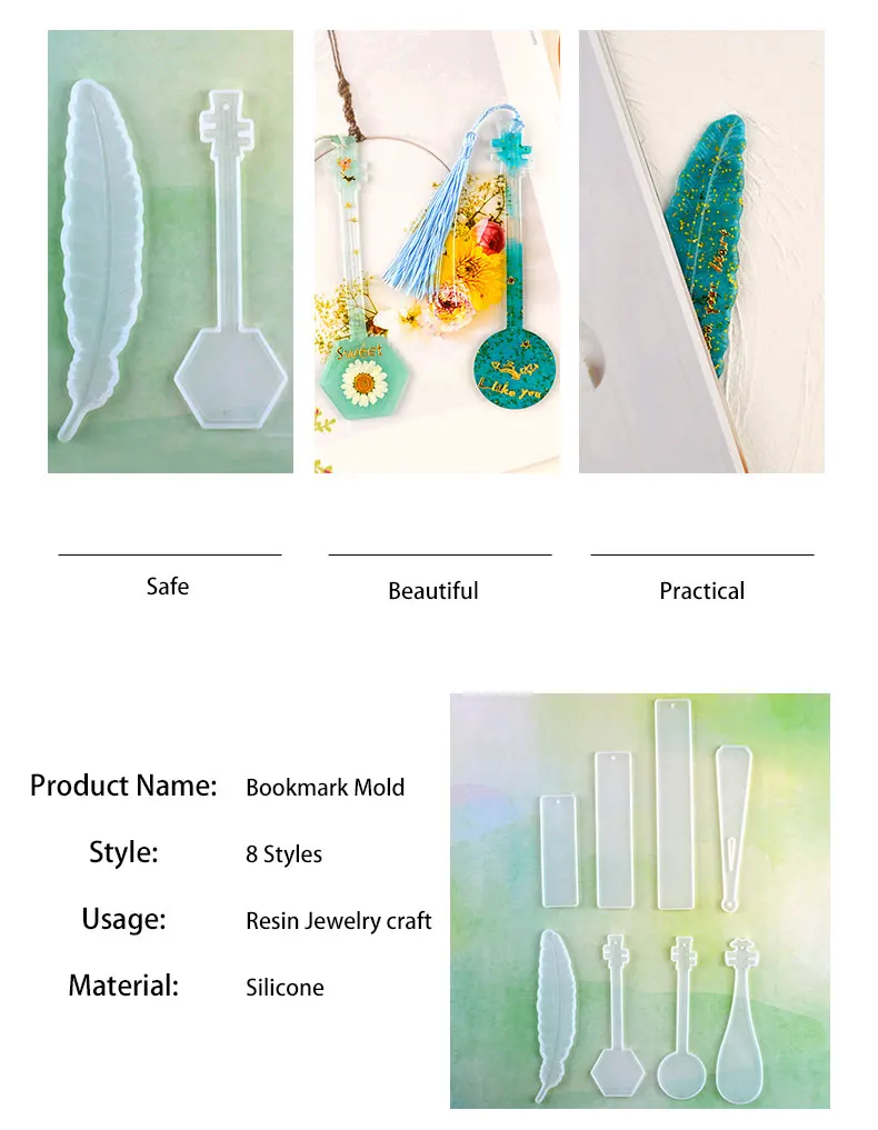 Сделай Сам Закладка форма для уф смолы силиконовые перья прямоуголь...