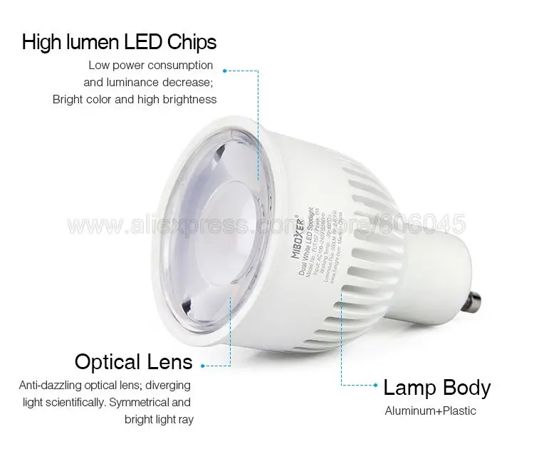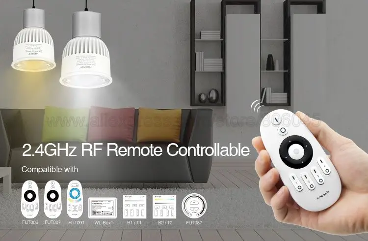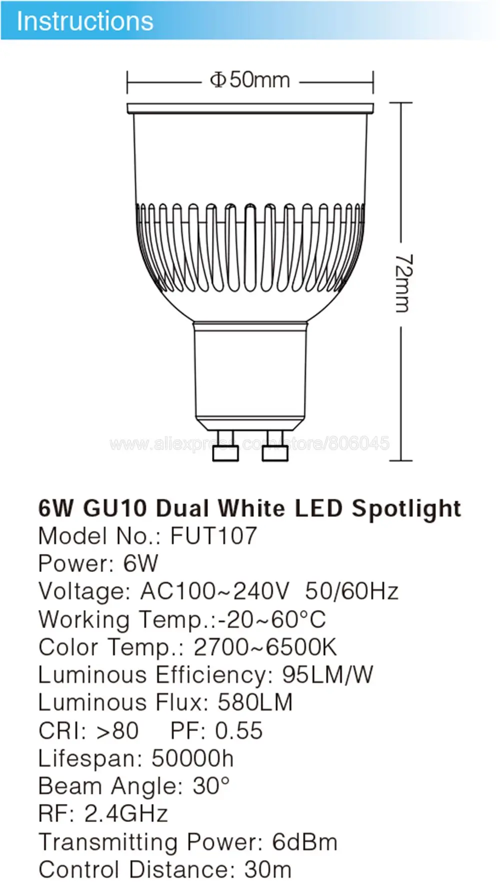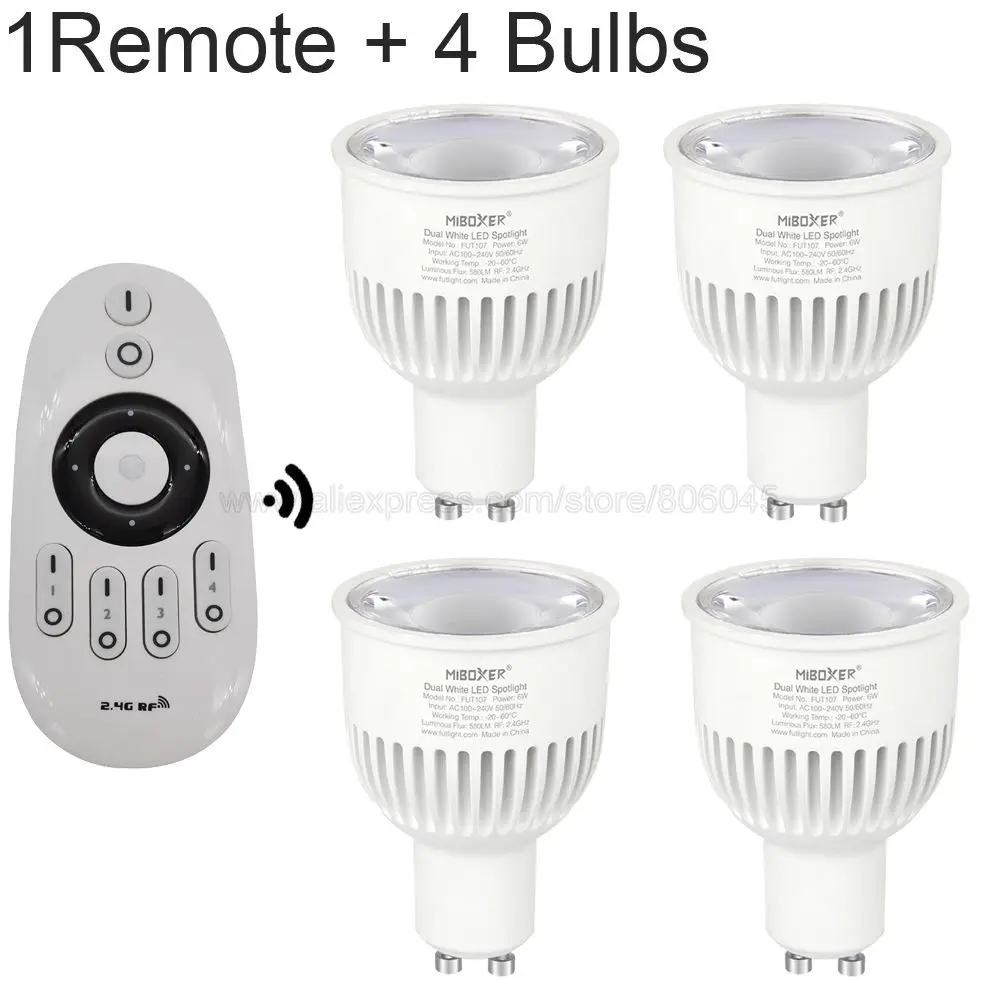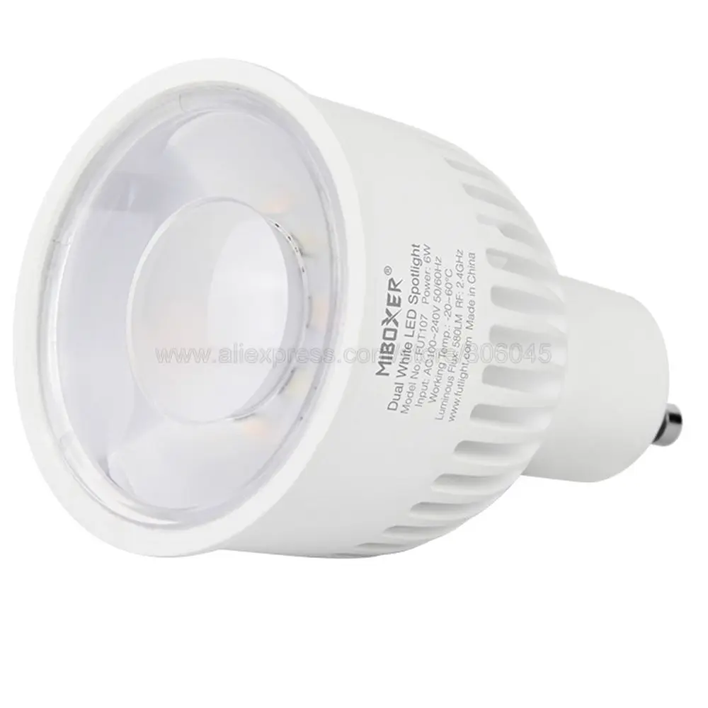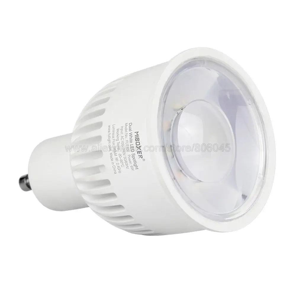 Светодиодная лампа MiBoxer GU10, 6 Вт, двойной белый (CWWW), регулируемая цветовая температура, AC85-265V G, беспроводной пульт дистанционного управленияWi-Fi