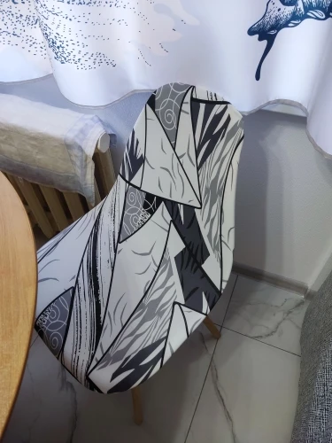 Товар пришёл очень быстро, раньше срока. Материал причиняй на ощупь, цвета соответствуют. Натягивается на стул хорошо, единственное на сгибе между мелкокрупитчатый и спинкой пузырь получается. Думаю, примнётся со временем