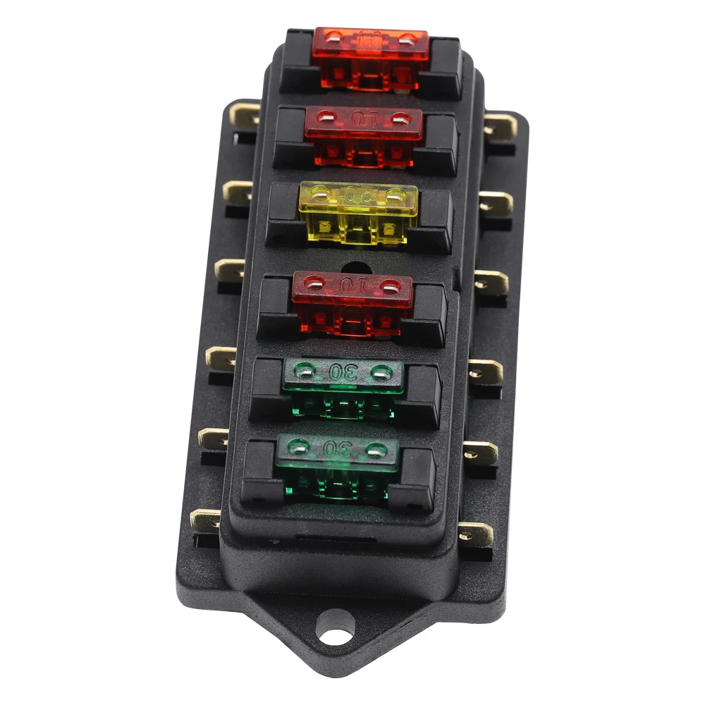 6-полосная стандартная коробка предохранителей ATO Blade пластиковая крышка DC 12V/24V автомобильный держатель блока предохранителей с 6 шт 3A-30A предохранители для авто автомобиля