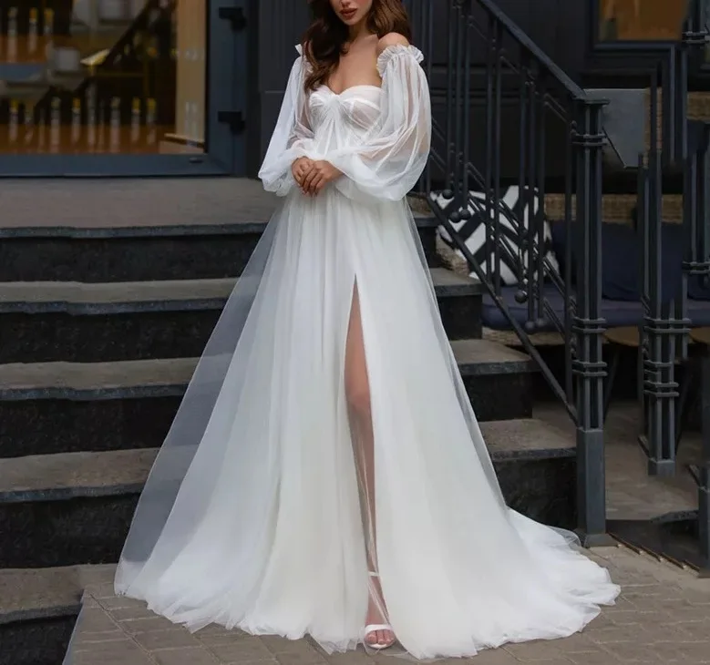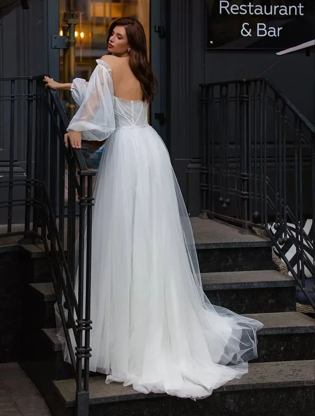 Свадебное платье для росписи, свадебное платье 2021 рукава фонарики
