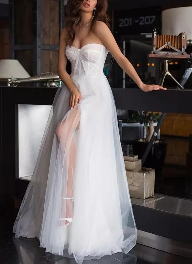 Свадебное платье с рукавами, свадебное платье разрез на юбке а-силуэт