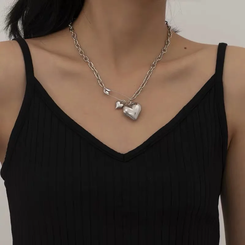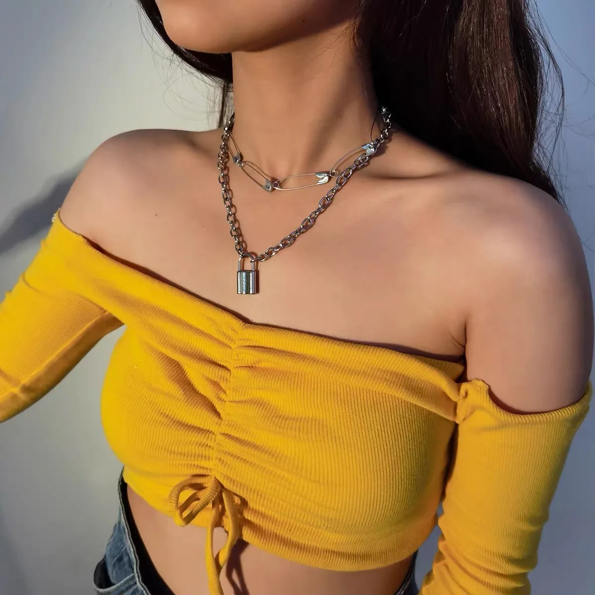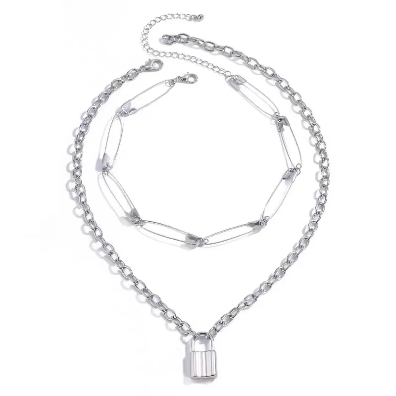 Модное ожерелье с булавкой 2 шт.компл. многослойное панк ожерелье с подвеской висячий замок в стиле хип-хоп женское комбинированное ожерелье