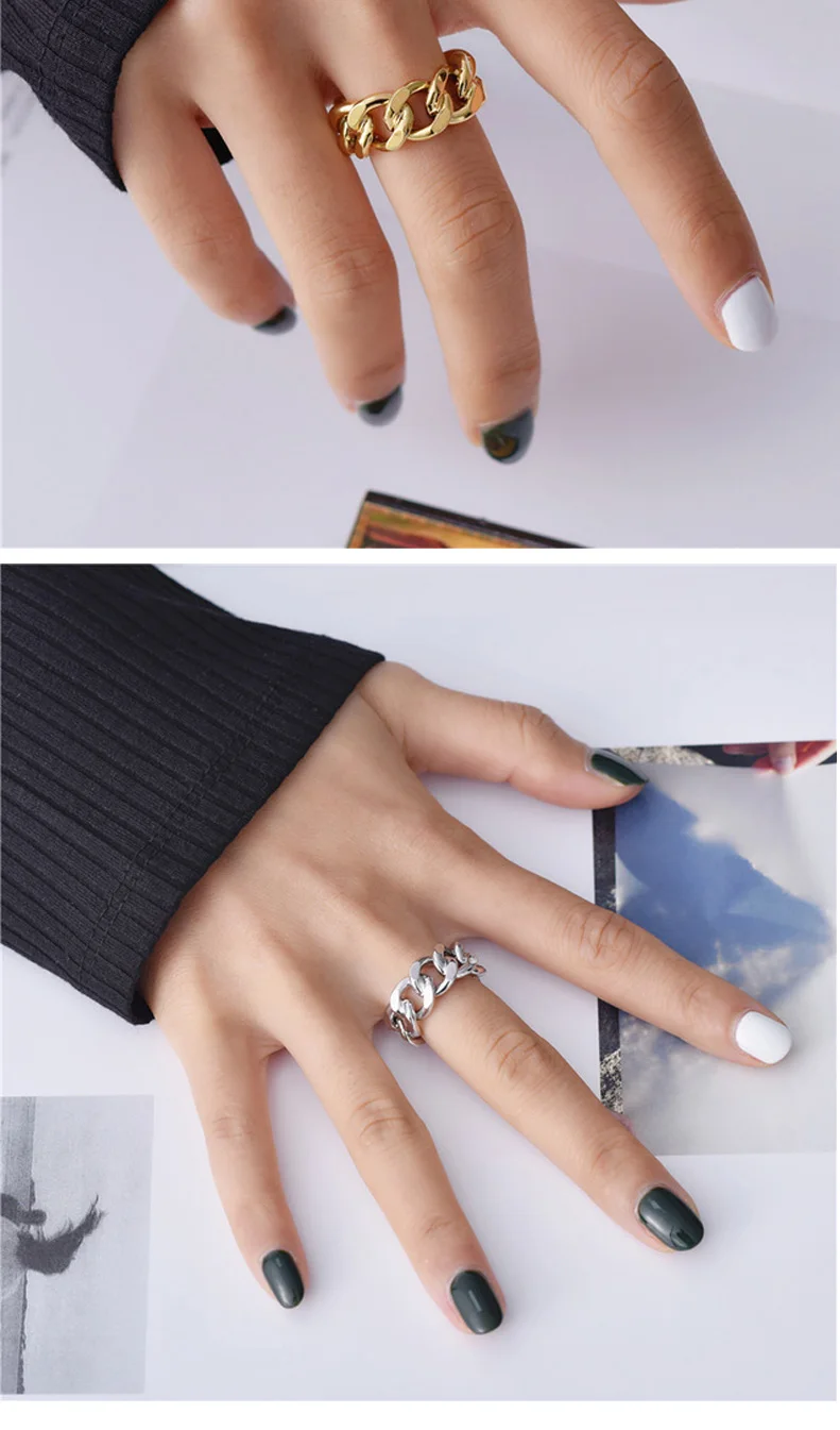 Массивные кольца-цепочки золотого и серебряного цвета, геометрические ювелирные украшения для девушек, винтажные открытые Регулируемые кольца, модные аксессуары, 2021