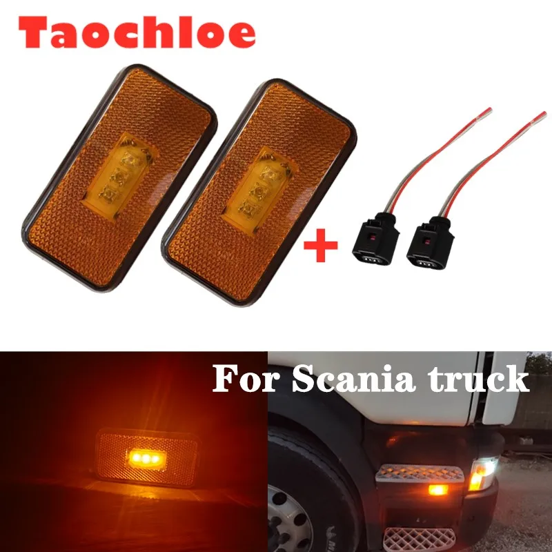 2 шт. 24v янтарные светодиодные огни для грузовика Scania боковые габаритные тяжелых грузовиков для Scania задние габаритные огни запчасти корпуса грузового автомобиля с 2 шт. разъем