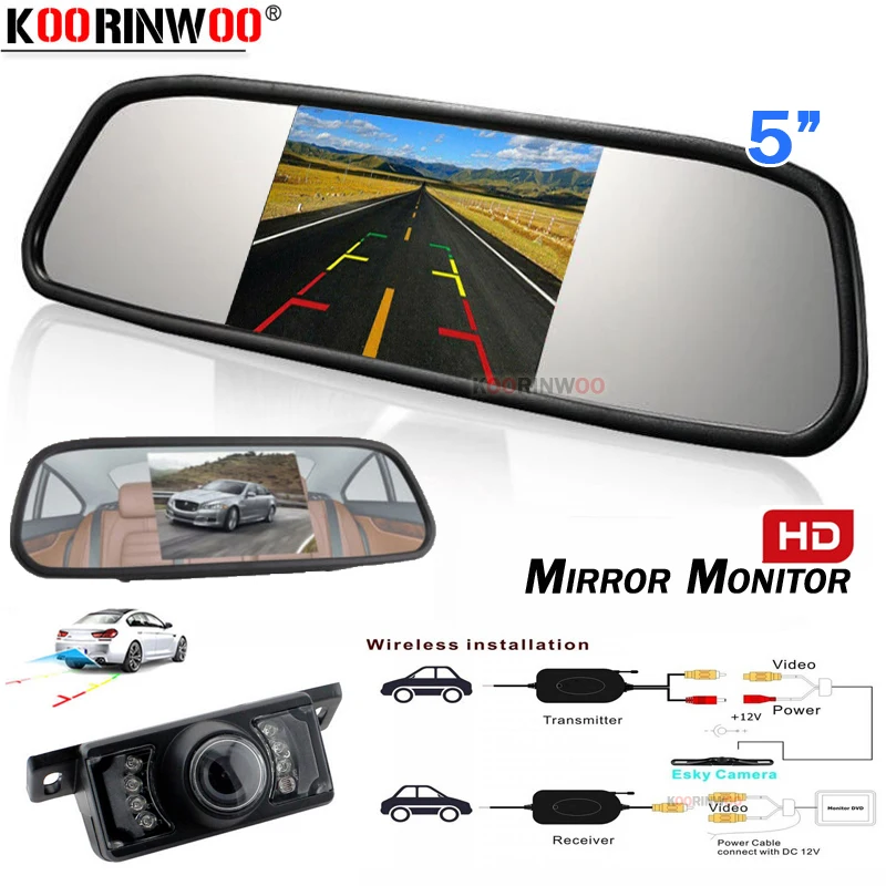 Koorinwoo мониторное зеркало 5 дюймовый монитор камера заднего вида Ночное видение 2 видео Вход камеры заднего хода, Парковочные системы