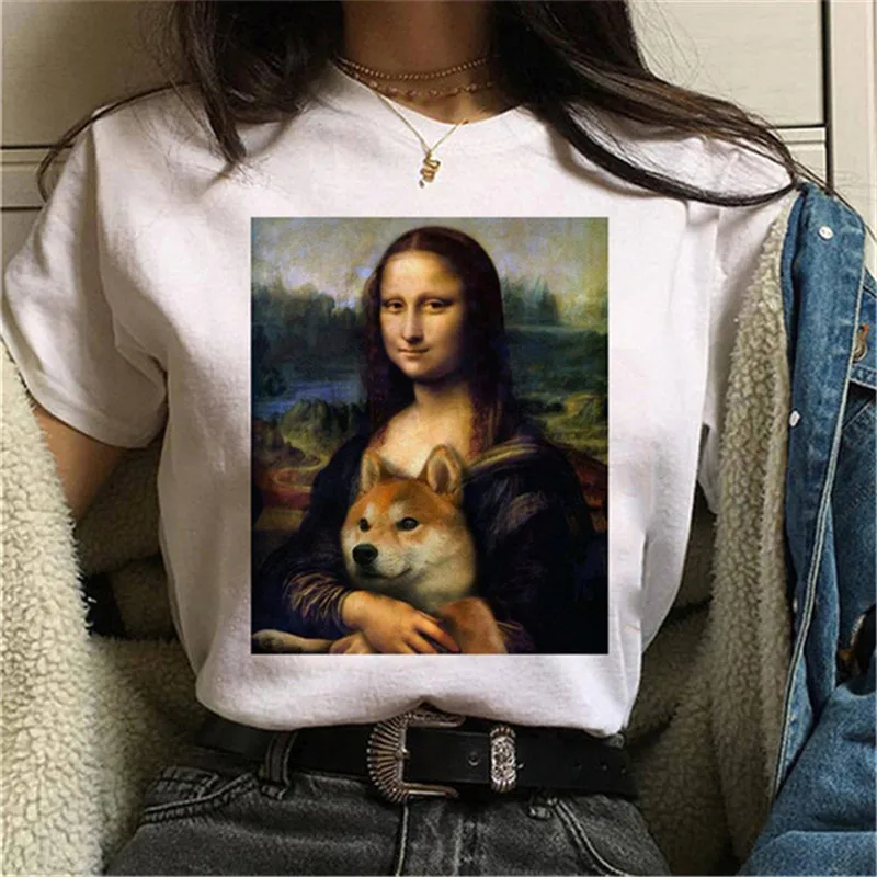 Женская летняя футболка в эстетике Моны Лизы, повседневные футболки...