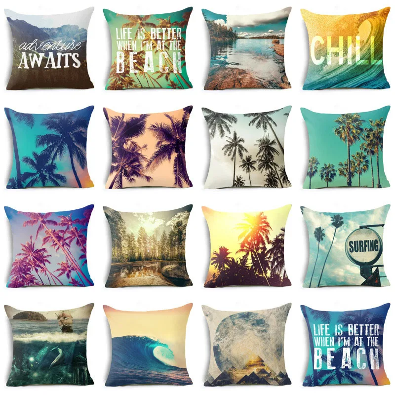 Наволочка с рисунком морского берега и кокосового дерева, чехол для...
