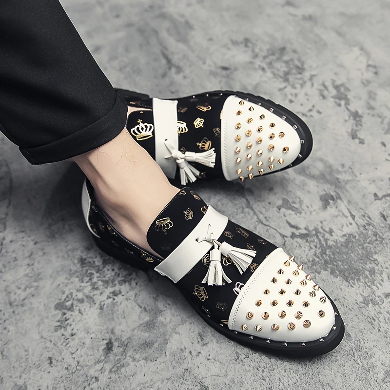 Туфли мужские кожаные в стиле ретро, Классическая обувь для вождения, плоская подошва, классические, на свадьбу, обувь в стиле панк, с заклепками