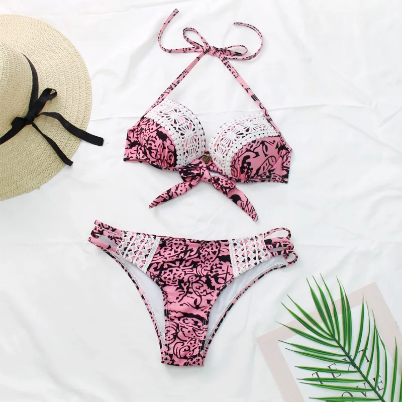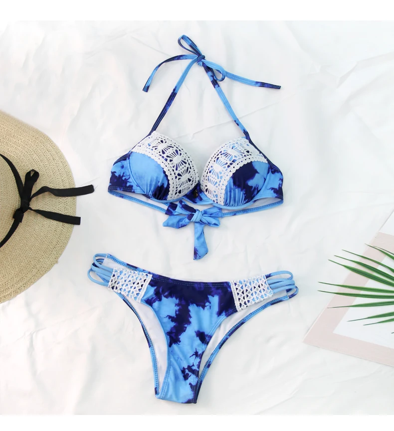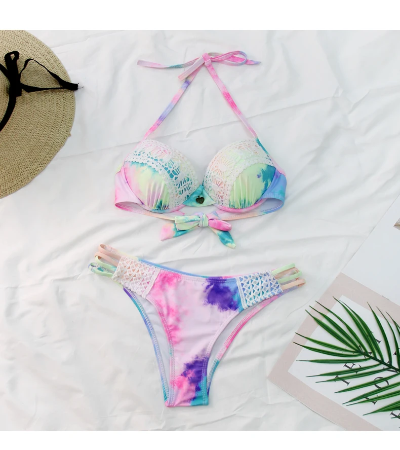 Купальник женский кружевной с эффектом пуш-ап, пикантный купальник, красная одежда для плавания, бикини с принтом тай-дай, летняя одежда, 2021