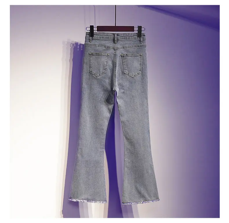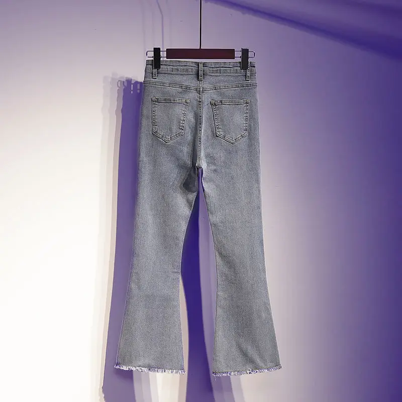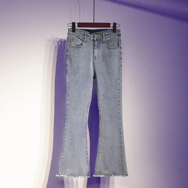 Женские Новые Винтажные эластичные расклешенные джинсы с высокой талией, женские повседневные джинсовые длинные брюки-годе для женщин