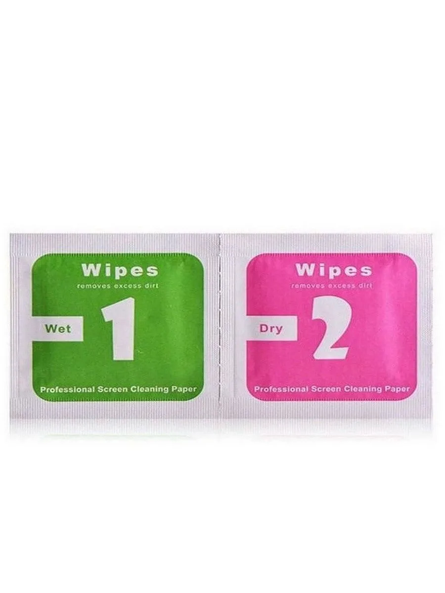 2 штуки: 2 защитных стекла, 2 стикера для удаления пыли, 2 пары влажных салфеток