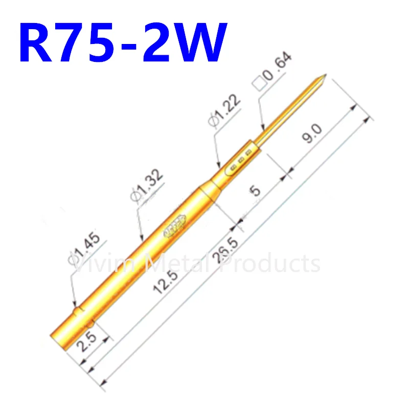 2,R75-2WМожно использовать сПружинные тестовые щупы серии P75С разными типами голов. Конкретные размеры и тип головы см. На следующем рисунке