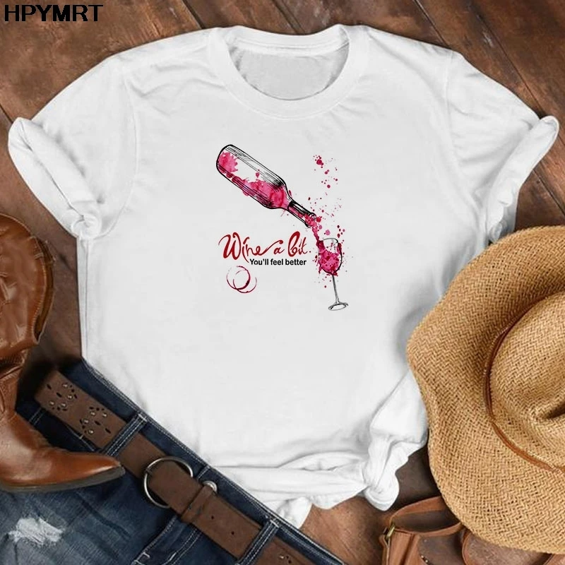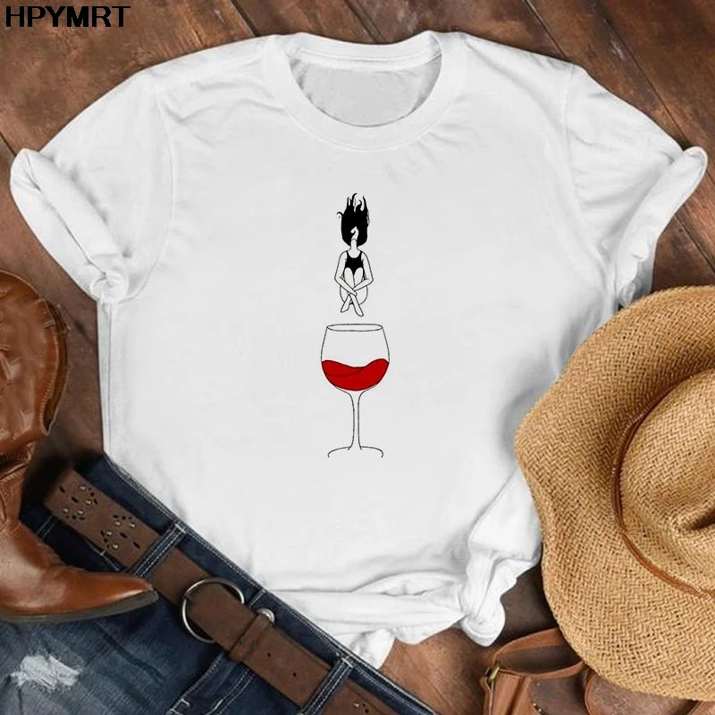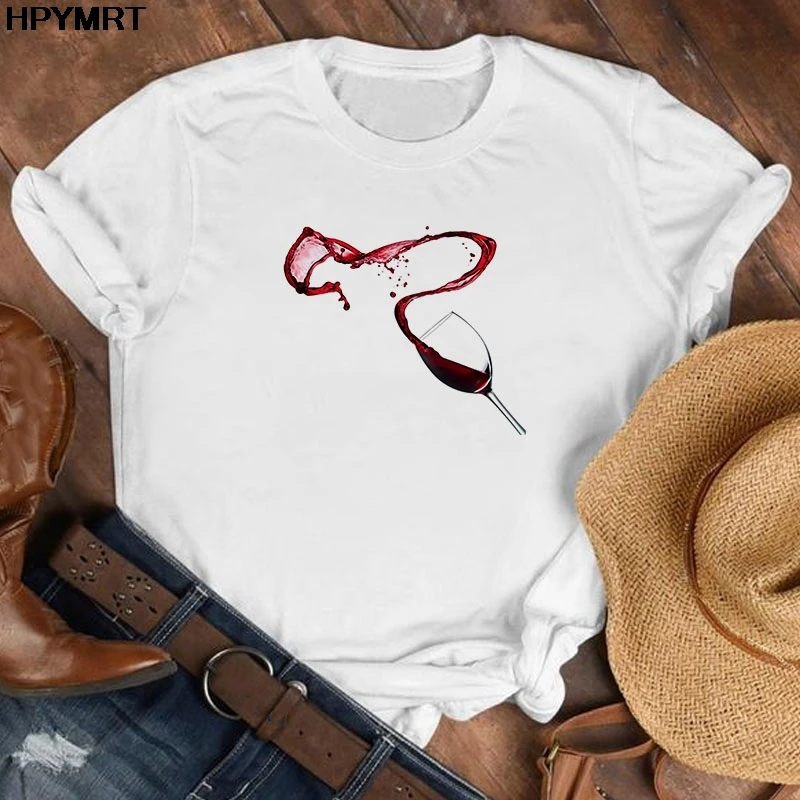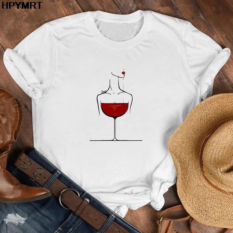 Женская Винтажная Футболка с принтом красного вина, новая летняя фу...