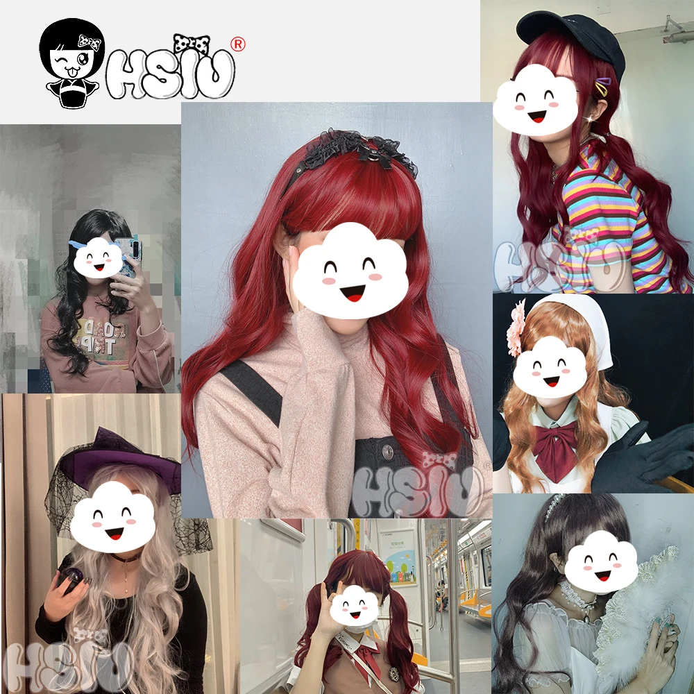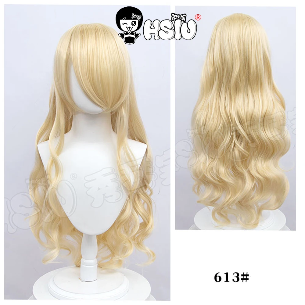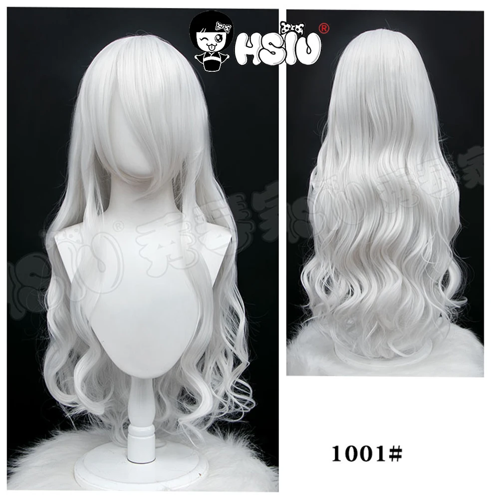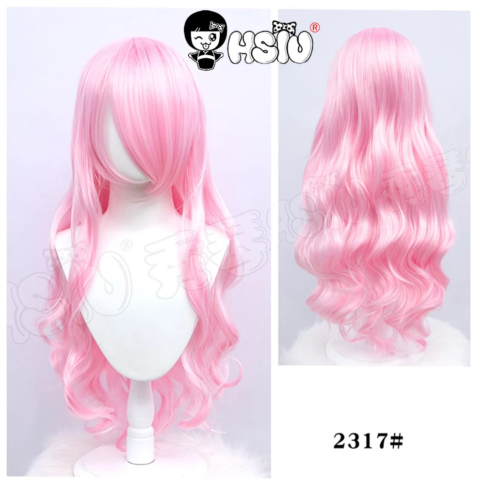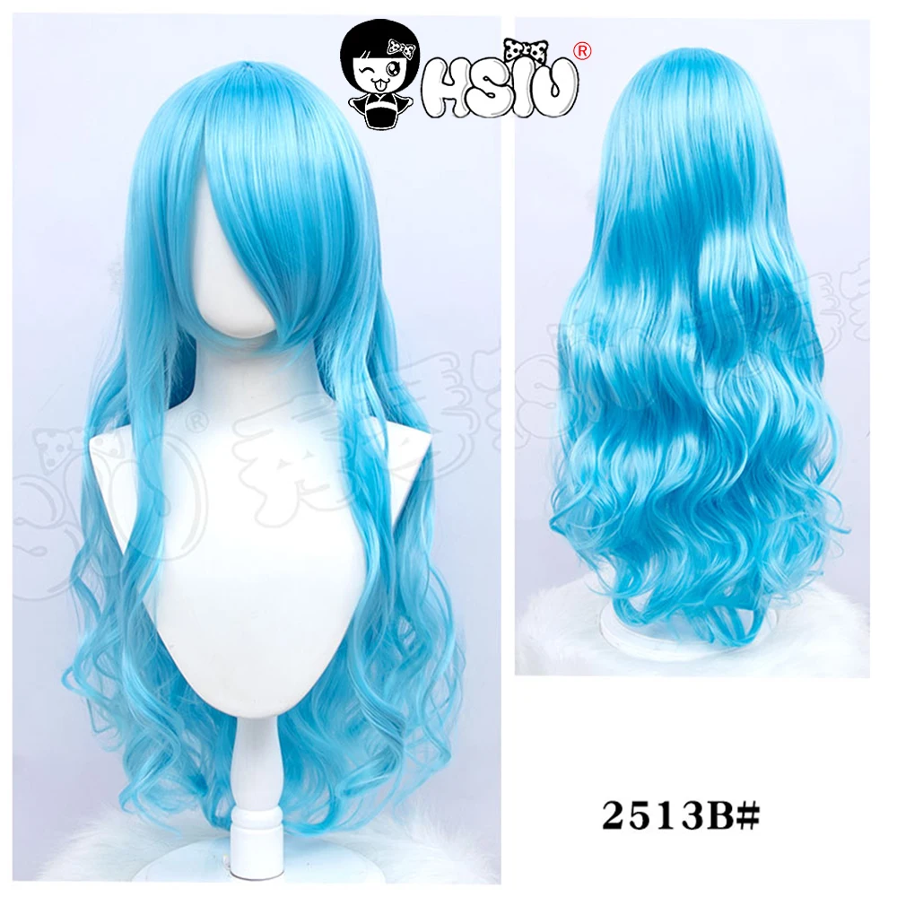 Парик для косплея HSIU, 75 см, 29,5 дюйма, разноцветные, длинные кудрявые волосы, розовый, синий, красный, фиолетовый, серебристый, для вечеринки, синтетический парик