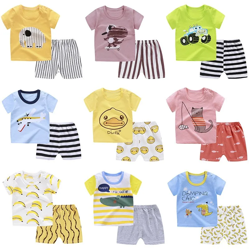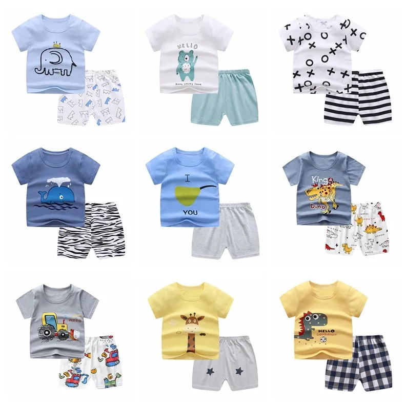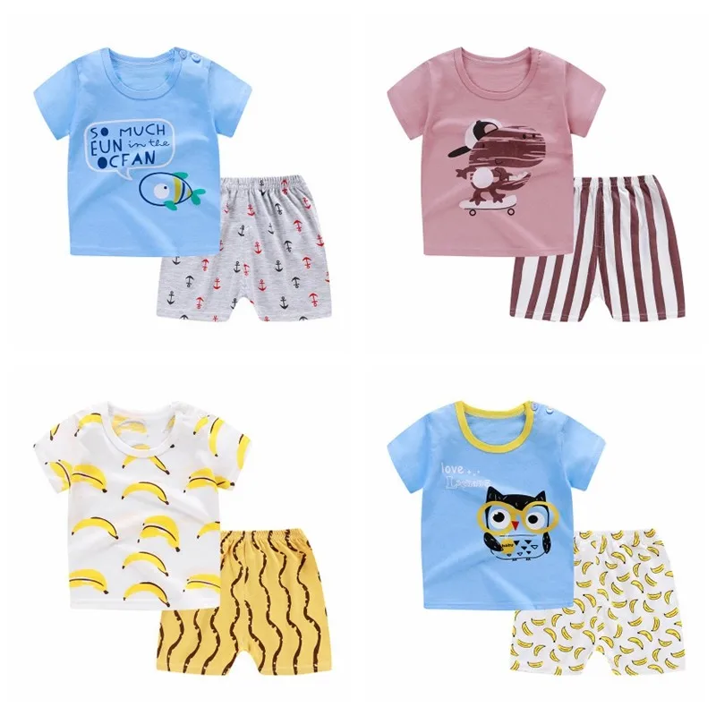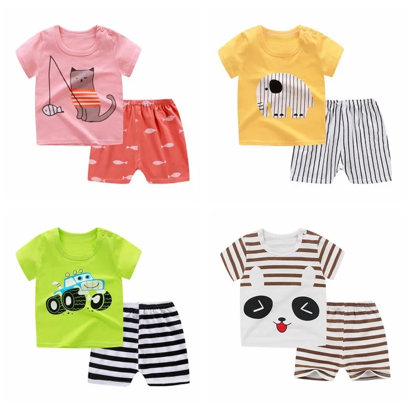 2021 новый детский костюм с коротким рукавом для мальчиков модная футболка шорты для девочек Летняя тонкая детская одежда