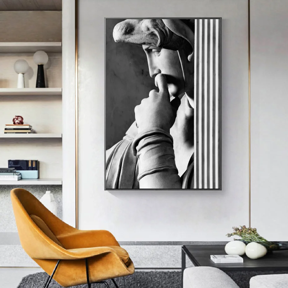 Скульптура головы Давида, скандинавские черно-белые плакаты и принт...