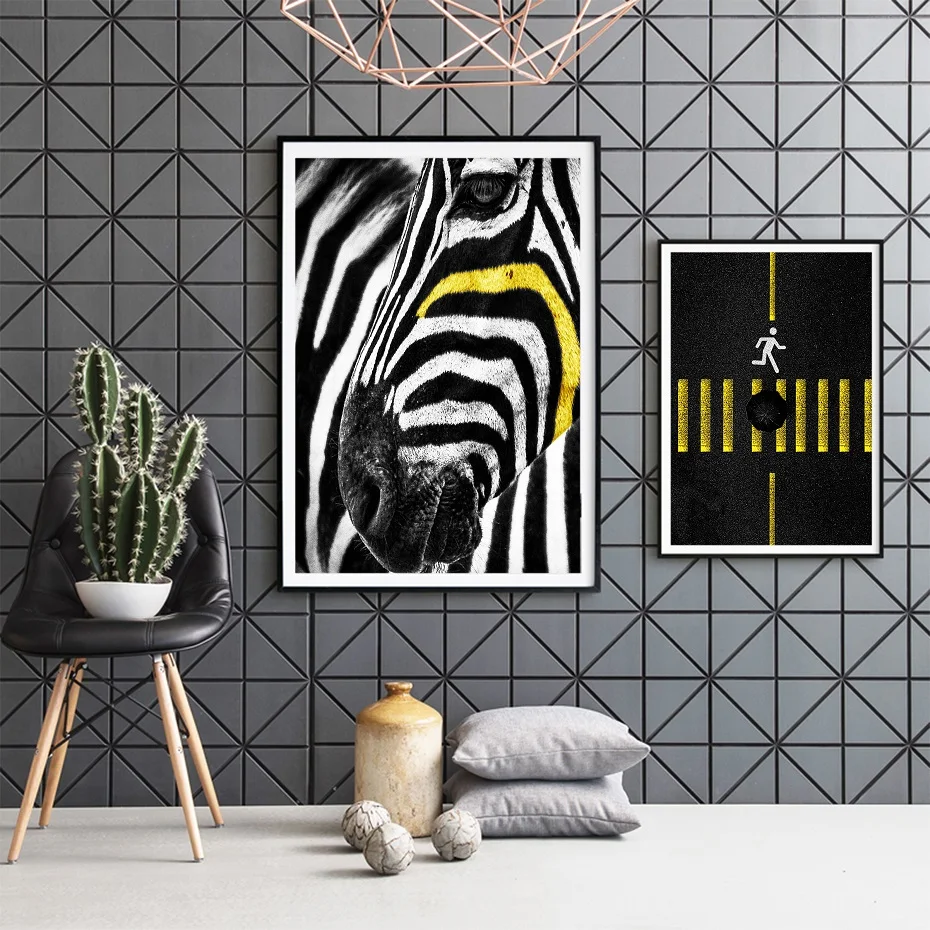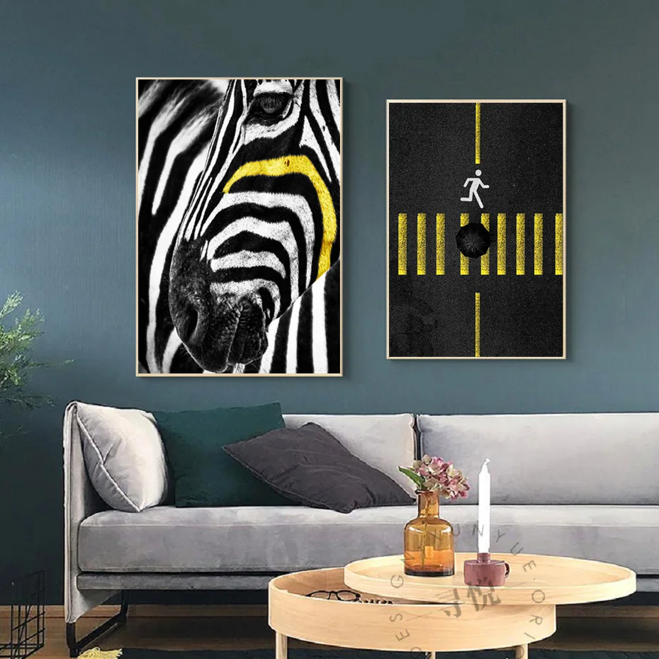 Современный городской серии Черный и белый искусство ресторан бар Зебра характер художественный постер Картина декоративная живопись Гостиная исследование де