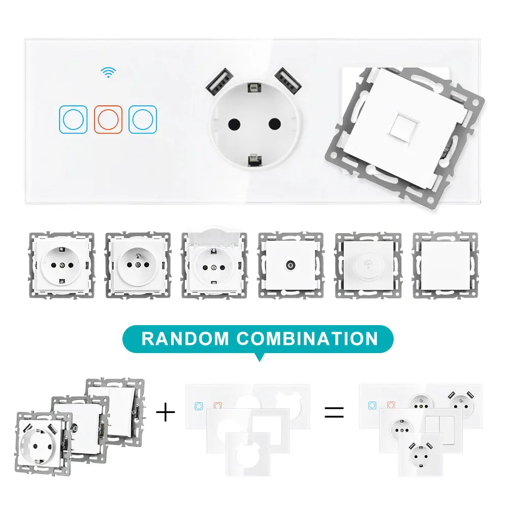 3 рамки панели из закаленного стекла без крепежной железной пластины и винтовРазмер: 224 мм * 82 ммЦвет: белыйНе стесняйтесь устанавливать три функциональных модуля для серии sran F